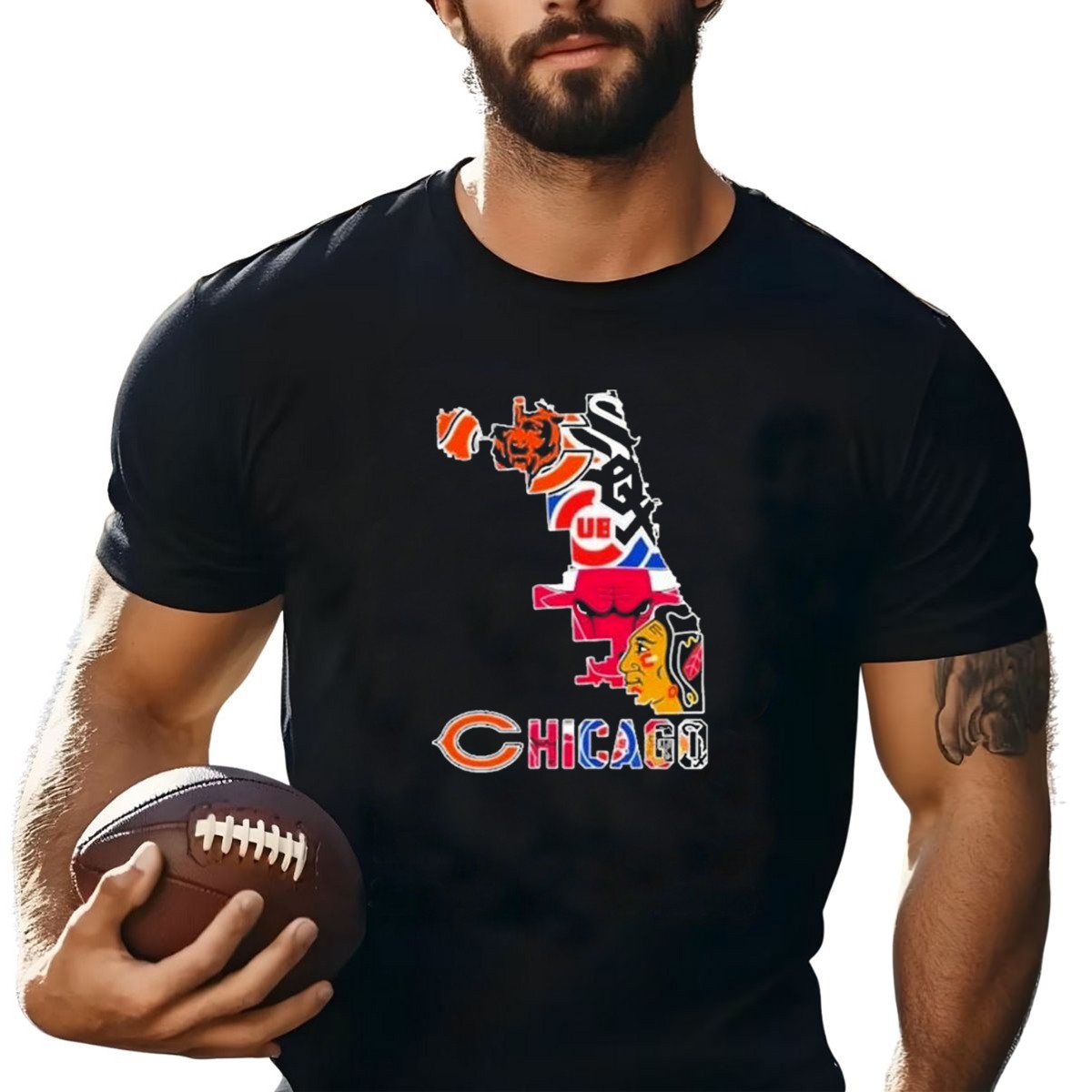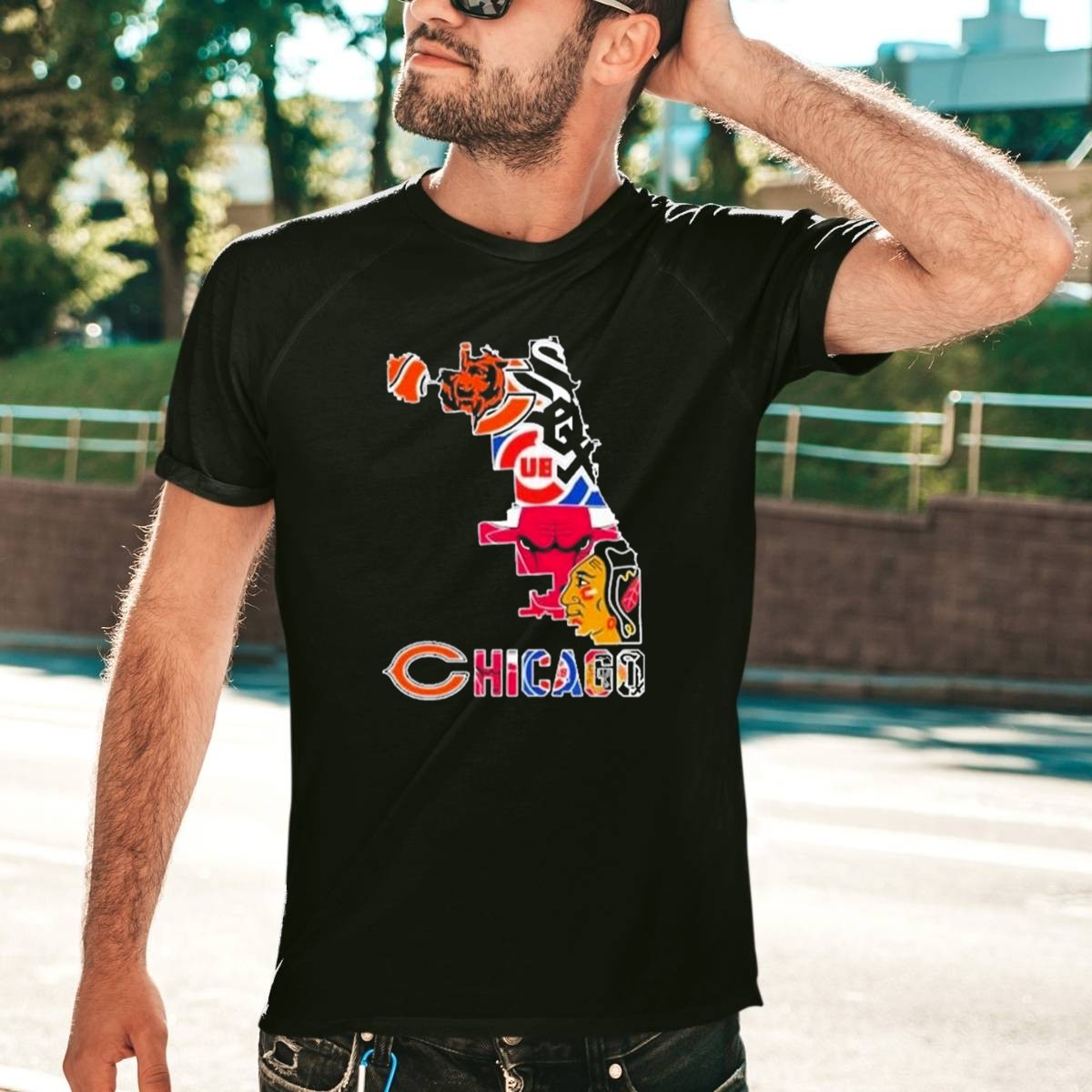 Chicago Bears Bulls Cubs White Sox Blackhawks Map T Shirt
