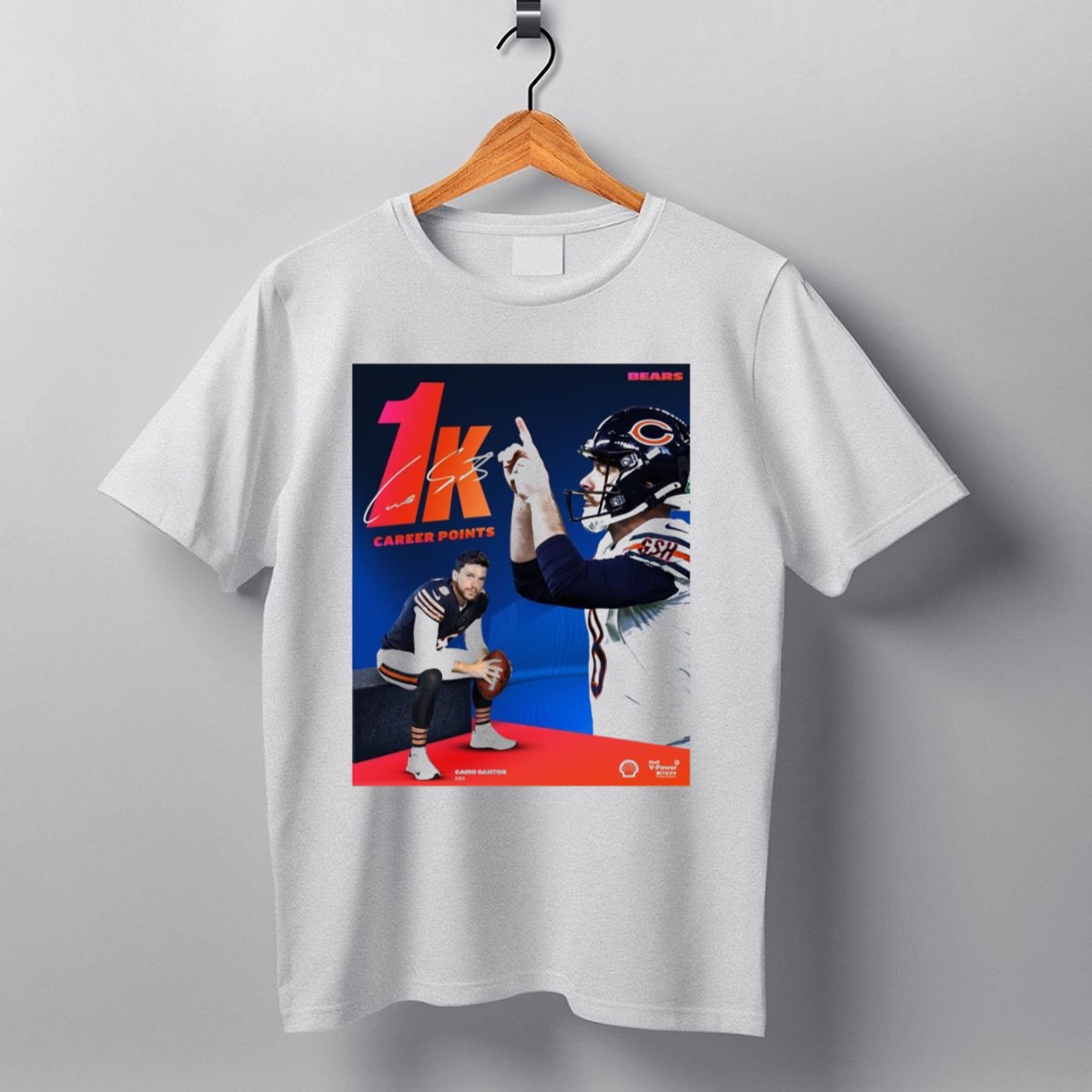 Show your support for the Chicago Bears and celebrate Cairo Santos’ incredible achievement of reaching 1,000 career points with this fan-made graphic T-shirt! Perfect for die-hard Bears fans, this shirt combines comfort and style, making it ideal for casual outings, themed events, or just lounging at home. The unique design showcases your passion for the game while ensuring you stand out in any crowd.