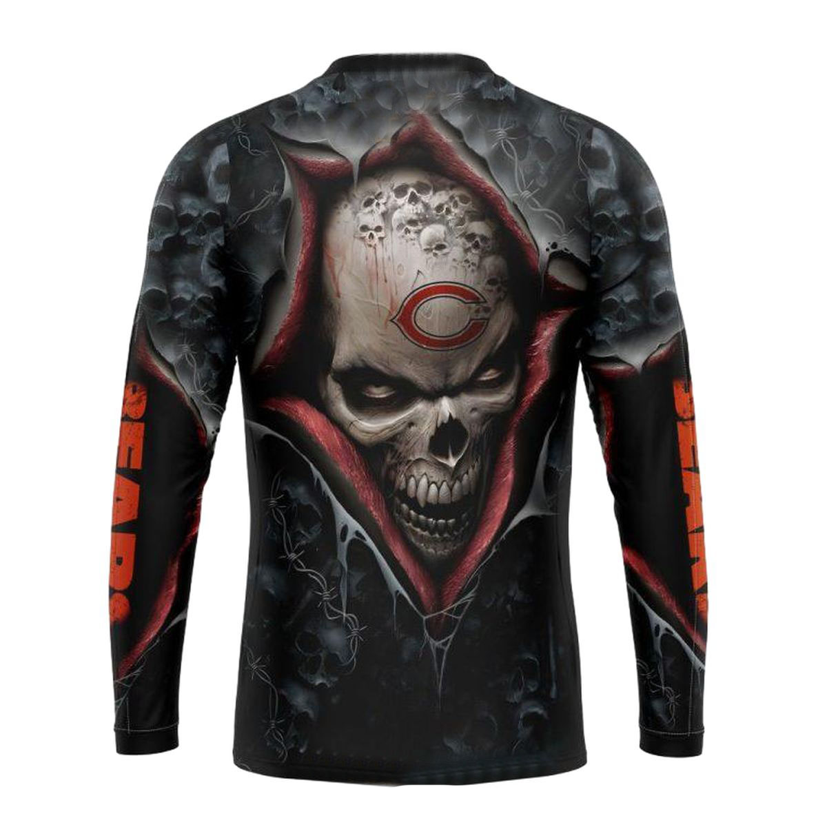 Get ready to embrace the spooky season with our Chicago Bears Halloween Horror Skull AOP Sweatshirt! Perfect for die-hard Bears fans and Halloween enthusiasts alike, this vibrant sweatshirt is designed for casual outings, cozy nights in, or spirited game days. Its all-over print captures the Halloween spirit with a unique twist, making it a standout piece in any streetwear collection.