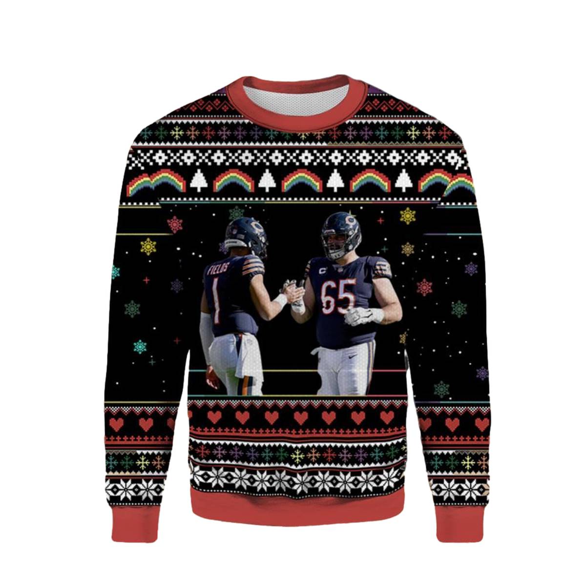 Get ready to showcase your team spirit with our custom-printed Chicago Bears Ugly Sweater featuring the iconic Justin Fields and Cody WhiteHair! Perfect for die-hard fans, this sweater is ideal for game day gatherings, holiday parties, or simply lounging at home while cheering on your favorite team. With its unique design and festive flair, you’re sure to be the life of the party!