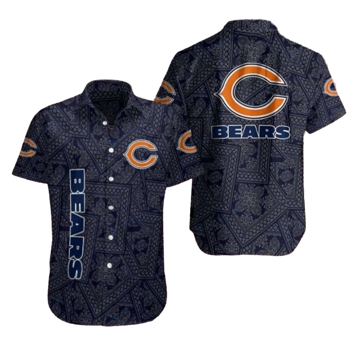 Introducing the Chicago Bears Navy Elegance Bears Pattern Hawaiian Shirt, the perfect blend of team spirit and tropical style! Designed for die-hard Bears fans and casual wearers alike, this shirt is ideal for game days, summer barbecues, or beach getaways. Its unique graphic print showcases your love for the Bears, making it a standout piece in any casual wardrobe.
