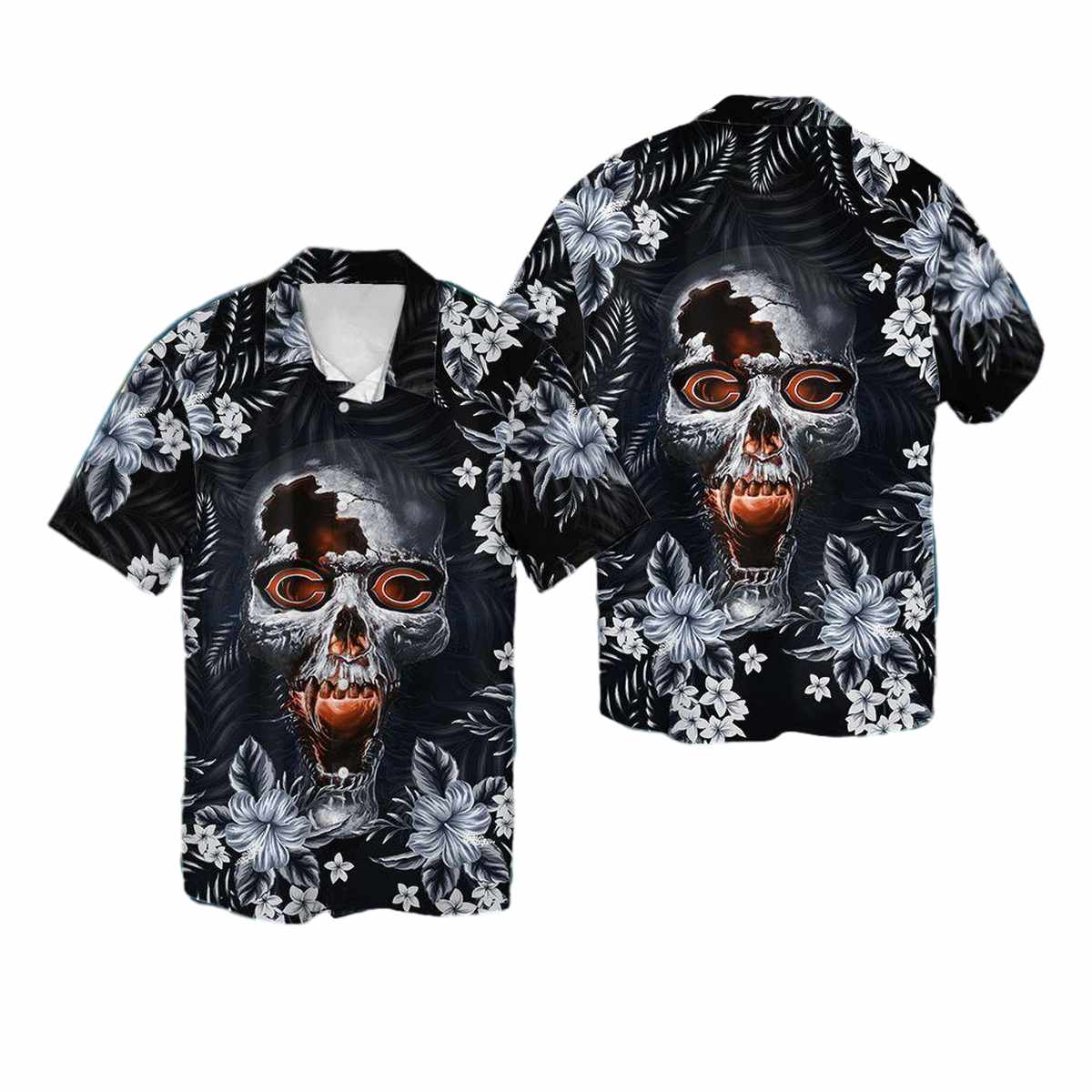 Chicago Bears Skull Floral Hawaiian Shirt