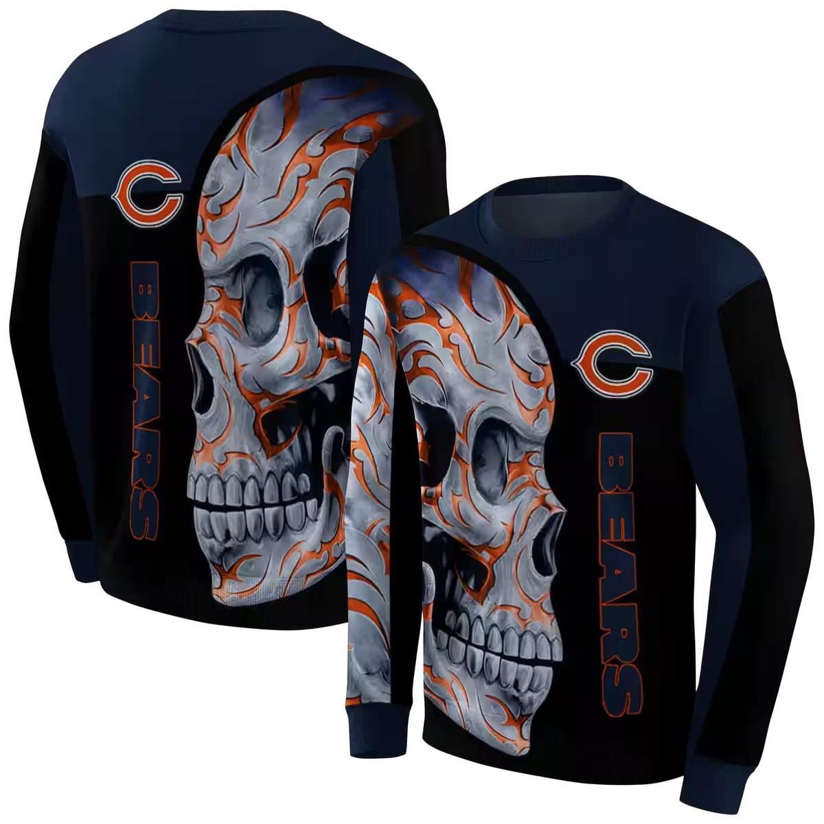 Show off your fierce team spirit with our Chicago Bears Skull Motif Blue Black AOP Sweatshirt. Perfect for die-hard fans and streetwear enthusiasts alike, this sweatshirt is ideal for casual outings, game days, or just lounging at home. Its striking all-over print combines comfort with bold style, making it a standout piece in your wardrobe.