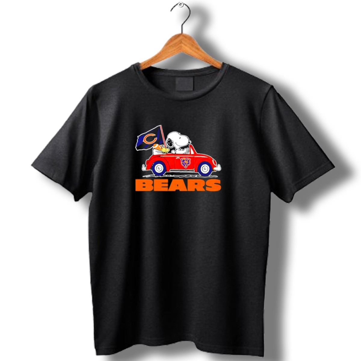 Chicago Bears Snoopy And Woodstock Driving Car With Flag T Shirt