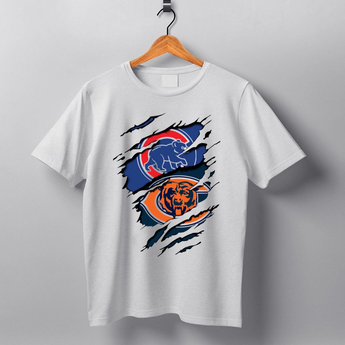 Show off your love for Chicago sports with our Chicago Cubs and Chicago Bears Logos Collision T-Shirt! This fan-made design is perfect for die-hard supporters, blending the iconic emblems of two beloved teams into one stylish tee. Whether you’re heading to a game, hanging out with friends, or just enjoying a casual day out, this t-shirt is a must-have for any true Chicagoan.