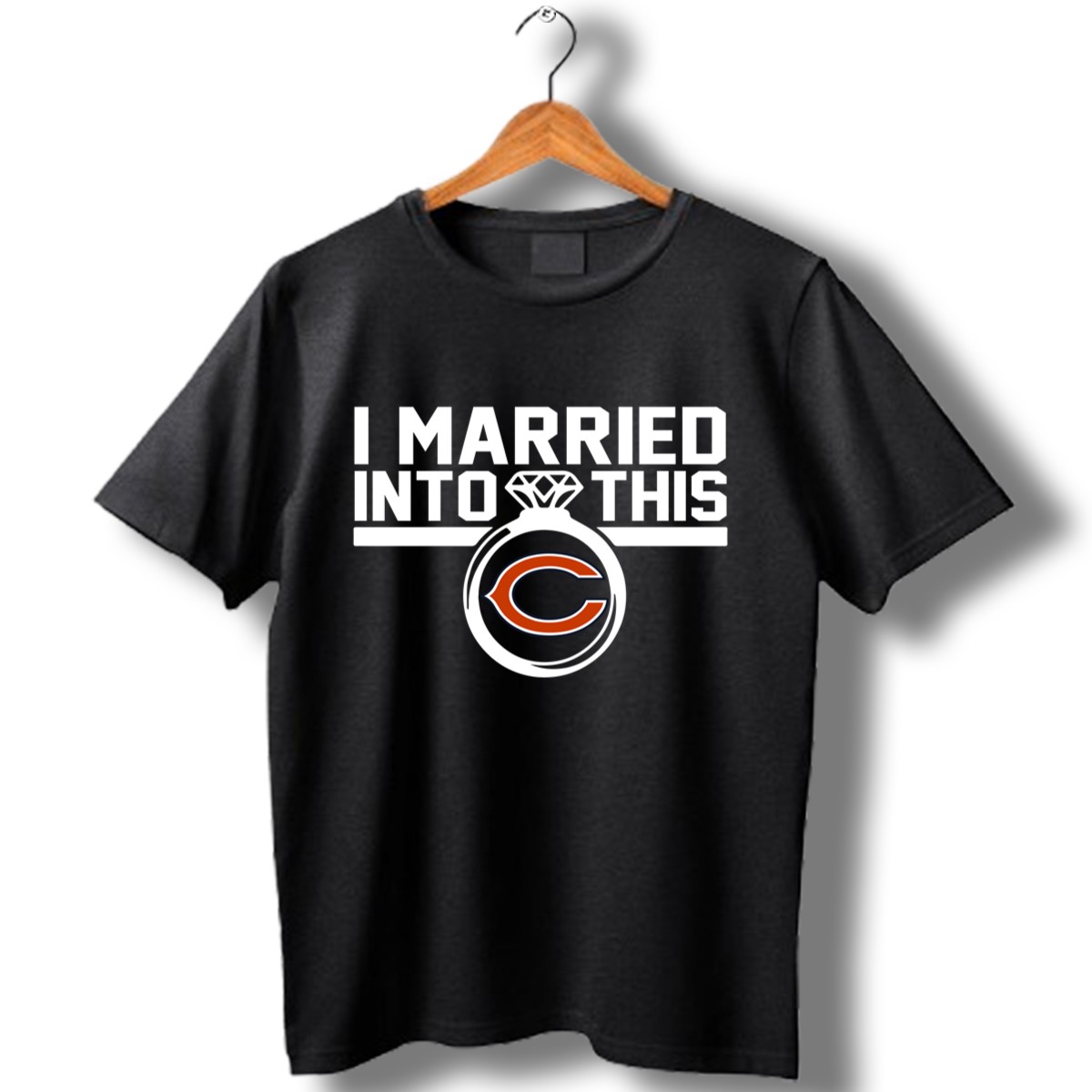 Show your love for the Chicago Bears with our “I Married Into This” graphic printed T-shirt, perfect for die-hard fans and proud spouses alike. This shirt is designed for casual outings, themed events, or simply lounging at home while you cheer on your team. Crafted with a fan-made design printed in the USA, it combines comfort and style, making it a unique addition to any Bears supporter’s wardrobe.