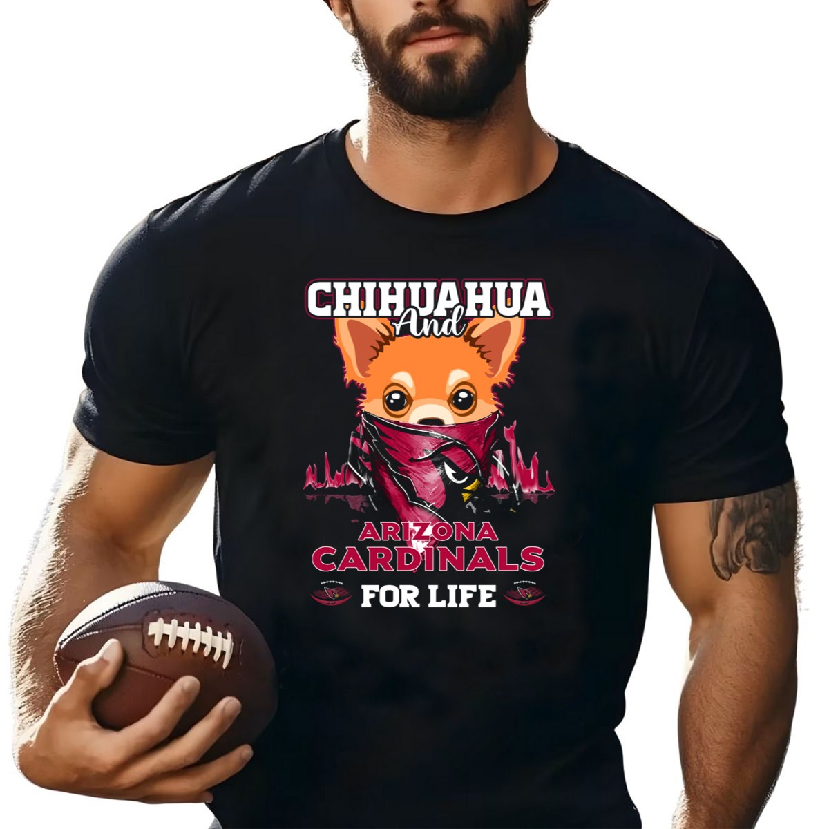 Show your love for both your furry friend and your favorite football team with the “Chihuahua and Arizona Cardinals for Life” T-Shirt. Perfect for dog lovers and sports fans alike, this fun tee is ideal for casual outings, themed events, or just lounging at home. Made with a fan-made design printed right here in the USA, it’s a unique addition to your wardrobe that combines team spirit with a passion for pets.