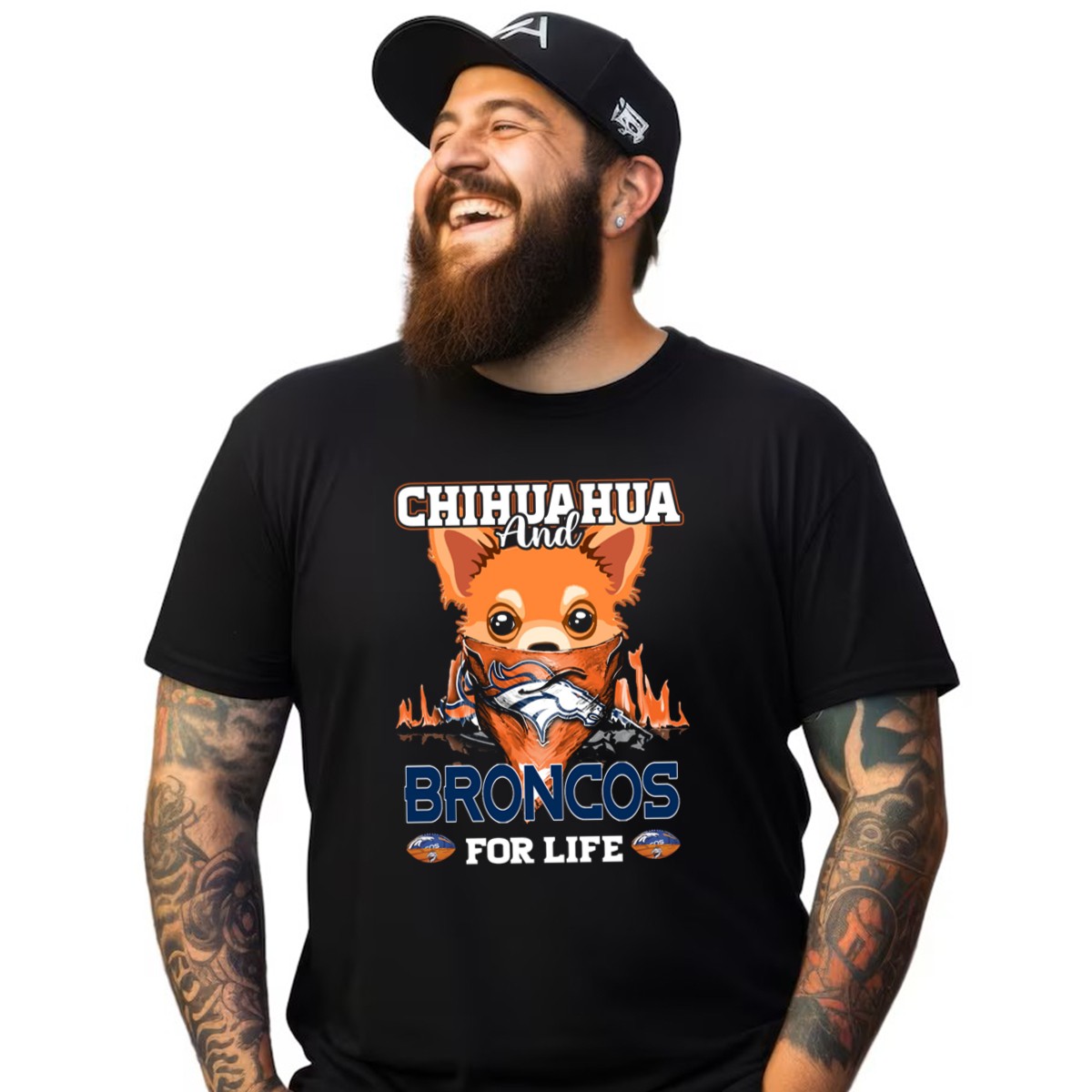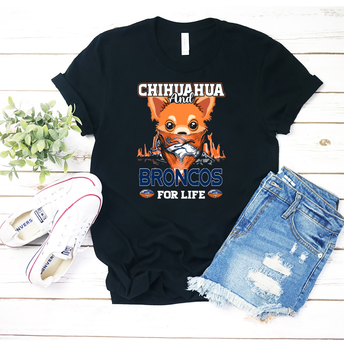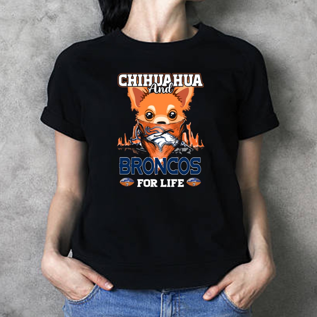 Celebrate your love for the Denver Broncos and your favorite furry friend with our exclusive “Chihuahua and Broncos for Life” T-Shirt! Perfect for dog lovers and sports fans alike, this shirt combines a playful design with a passion for football. Whether you’re cheering from the stands, enjoying a casual day out, or attending a themed event, this fan-made tee will showcase your team spirit in style. Made in the USA, it’s a must-have for every Broncos enthusiast who loves their chihuahua.