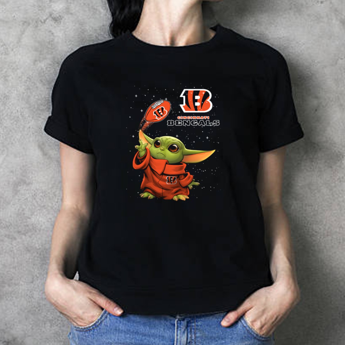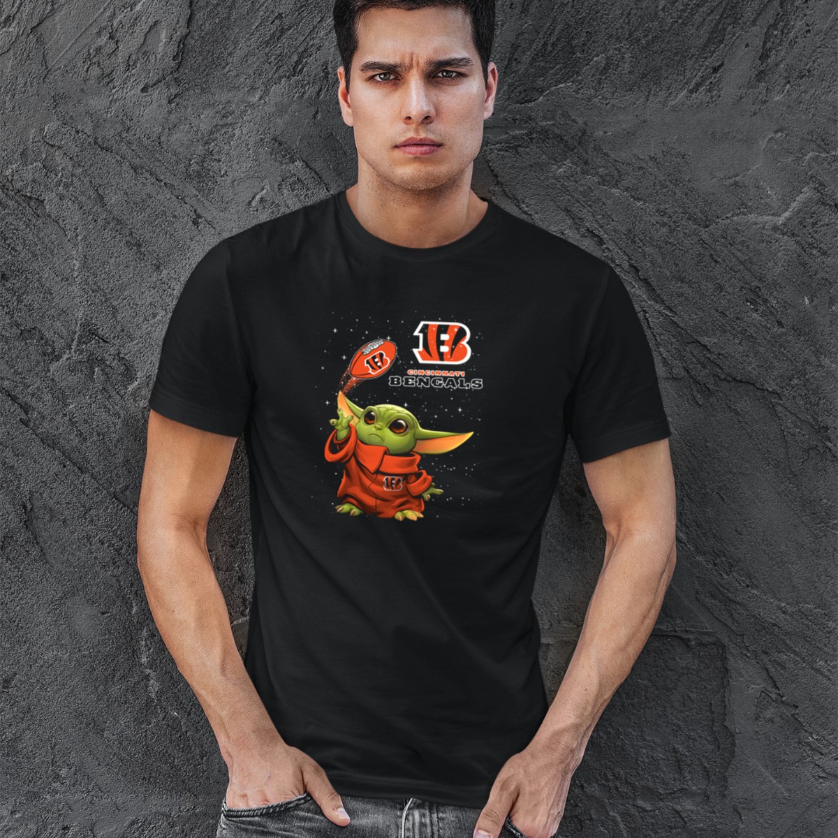 Show off your love for both the Cincinnati Bengals and the adorable Baby Yoda with this unique fan-made T-shirt! Perfect for die-hard football fans and Star Wars enthusiasts alike, this shirt is ideal for casual outings, game days, or themed events. Crafted with comfort in mind, its vibrant print celebrates the force powers of Baby Yoda while proudly representing your favorite team. Made in the USA, this T-shirt is a must-have addition to any fan’s wardrobe.