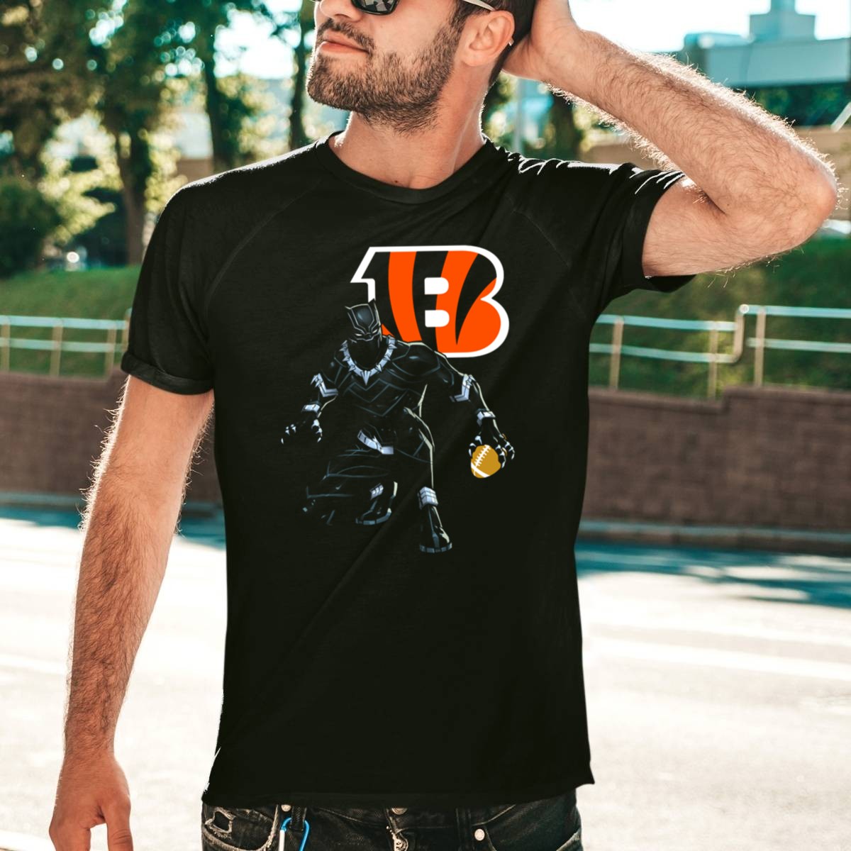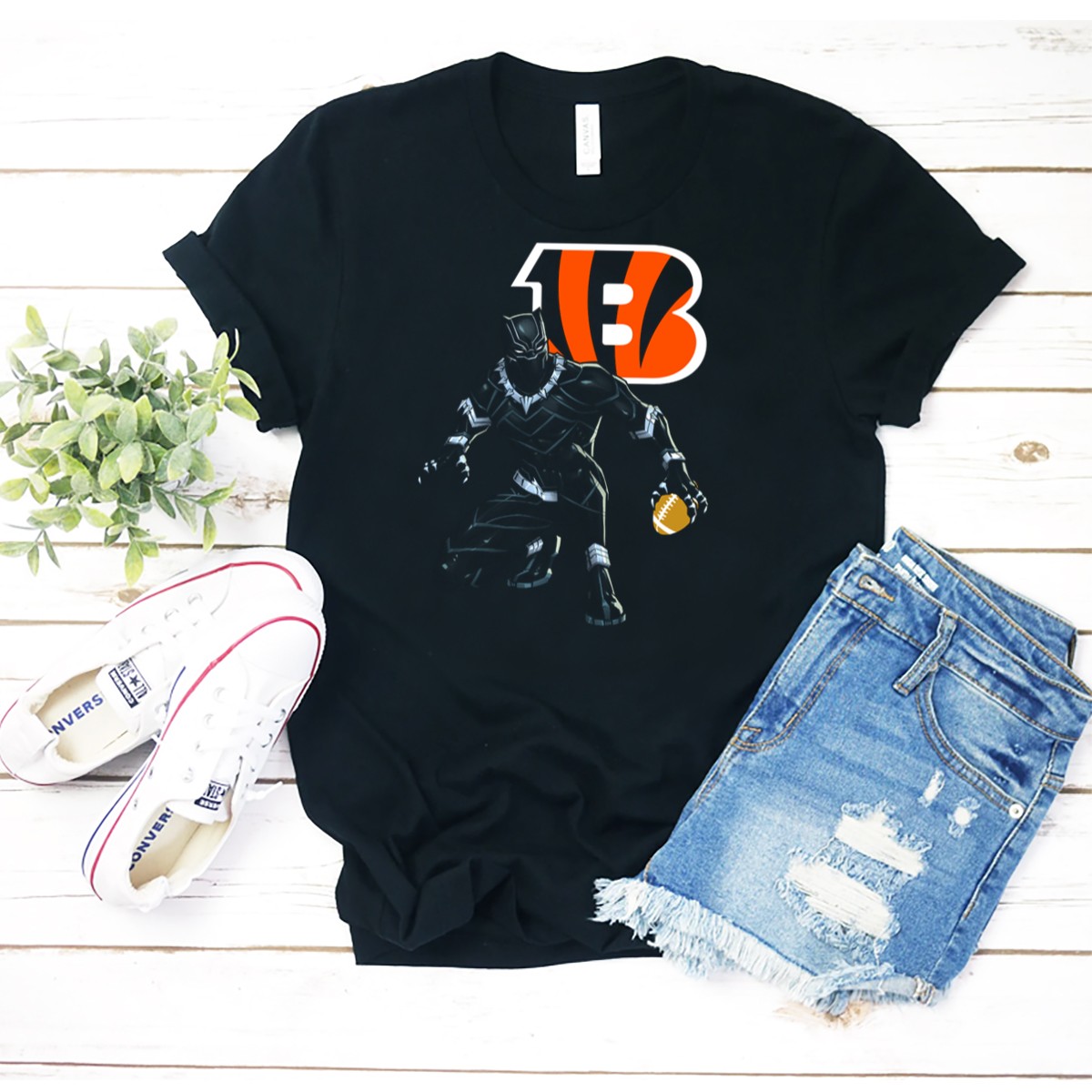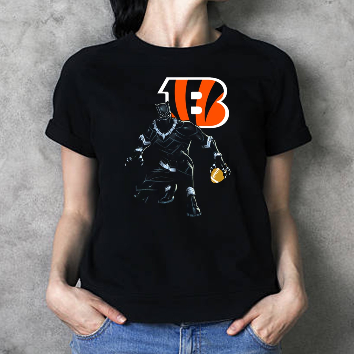 Show your team spirit in style with our Cincinnati Bengals Black Panther Football T-Shirt! This fan-made design combines the fierce energy of the Black Panther with the pride of being a Bengals supporter, making it the perfect choice for game days, casual outings, or themed events. Crafted for comfort and durability, this shirt is designed for true fans who want to showcase their love for the team in a unique way.