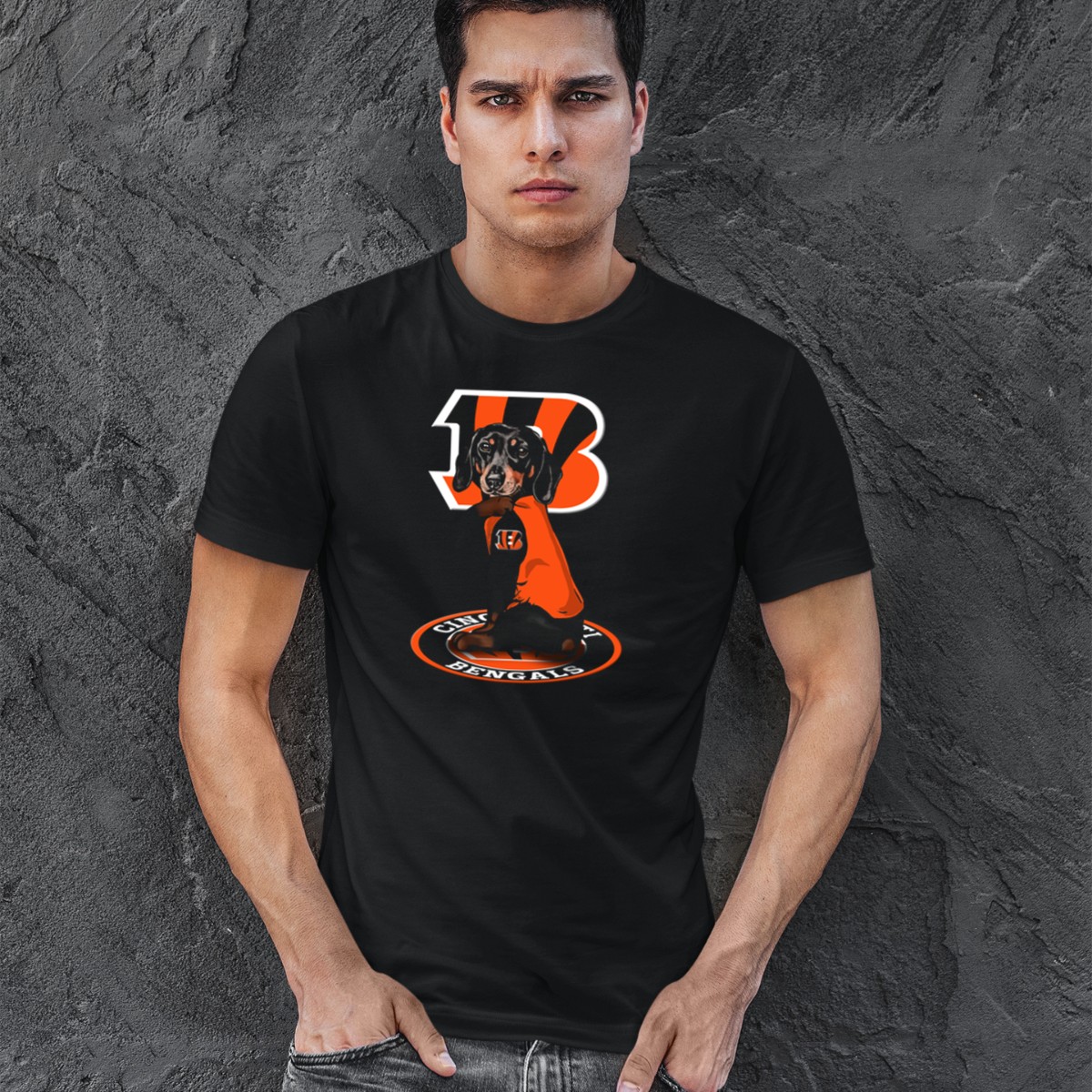 Show off your love for the Cincinnati Bengals with our fan-made Dachshund in Team Jersey T-Shirt! Perfect for dog lovers and sports enthusiasts alike, this shirt is a fun way to celebrate your team spirit while keeping it casual. Ideal for themed events, game days, or just lounging around, this unique design brings together your passion for the Bengals and your love for furry friends, making it a must-have for any devoted fan.
