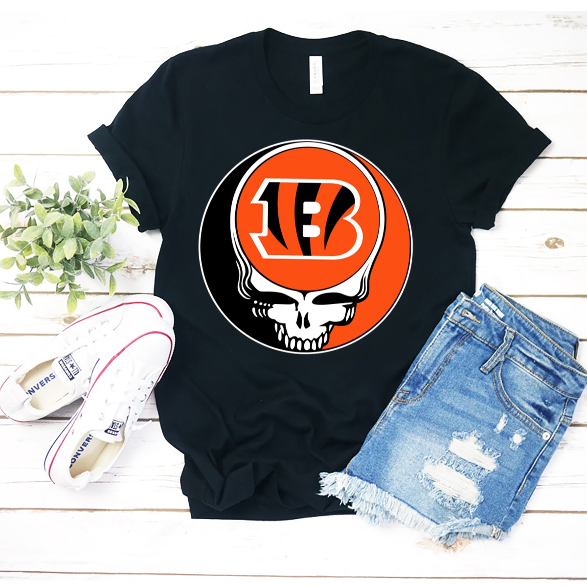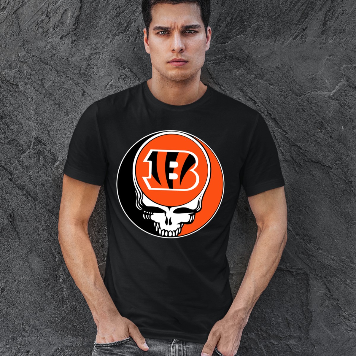 Show your love for both the Cincinnati Bengals and the iconic Grateful Dead with this uniquely designed fan T-shirt! Perfect for die-hard fans and music lovers alike, this shirt is ideal for casual outings, themed events, or simply lounging around. Made with a fan-made design printed right here in the USA, it combines comfort and style, making it a must-have for any true supporter.
