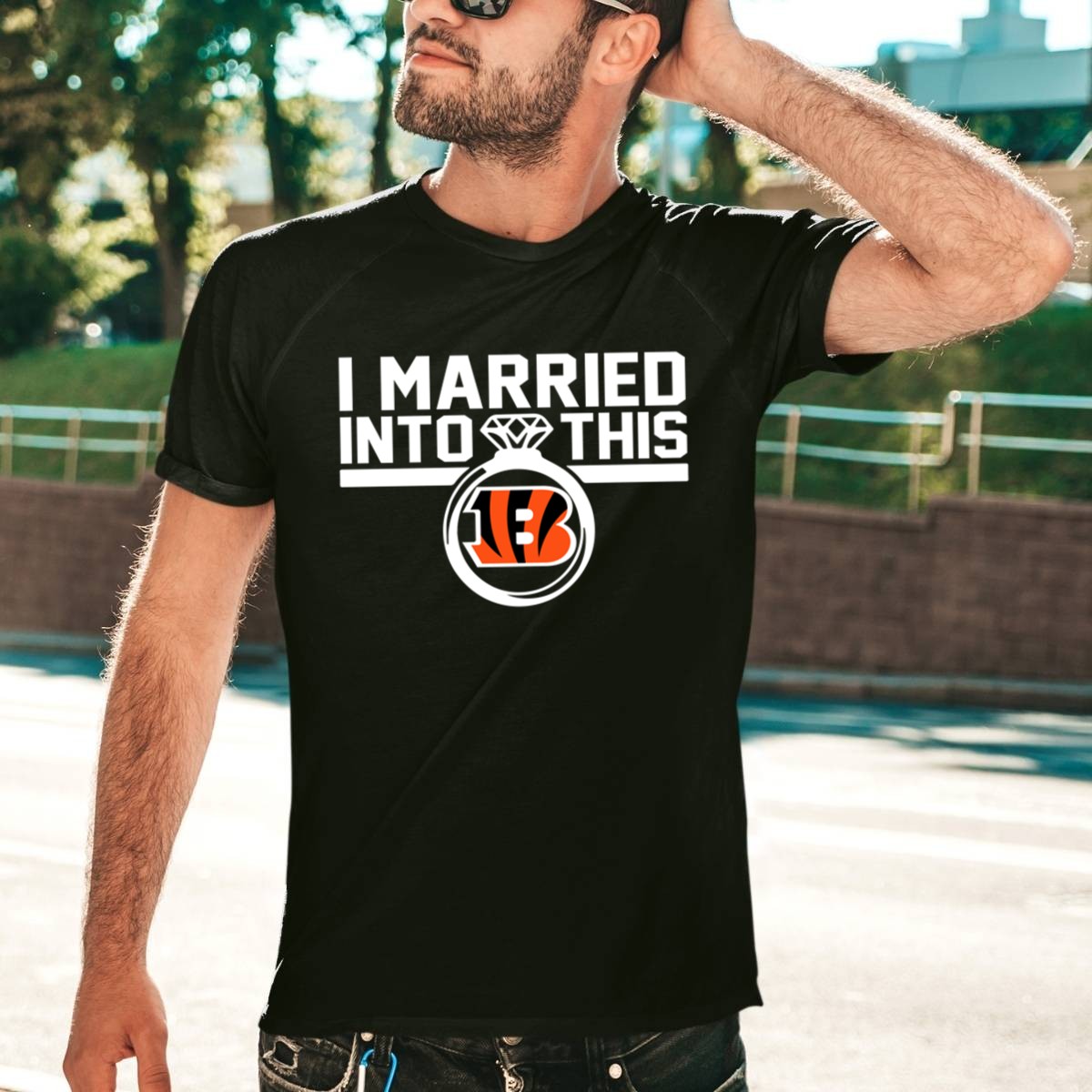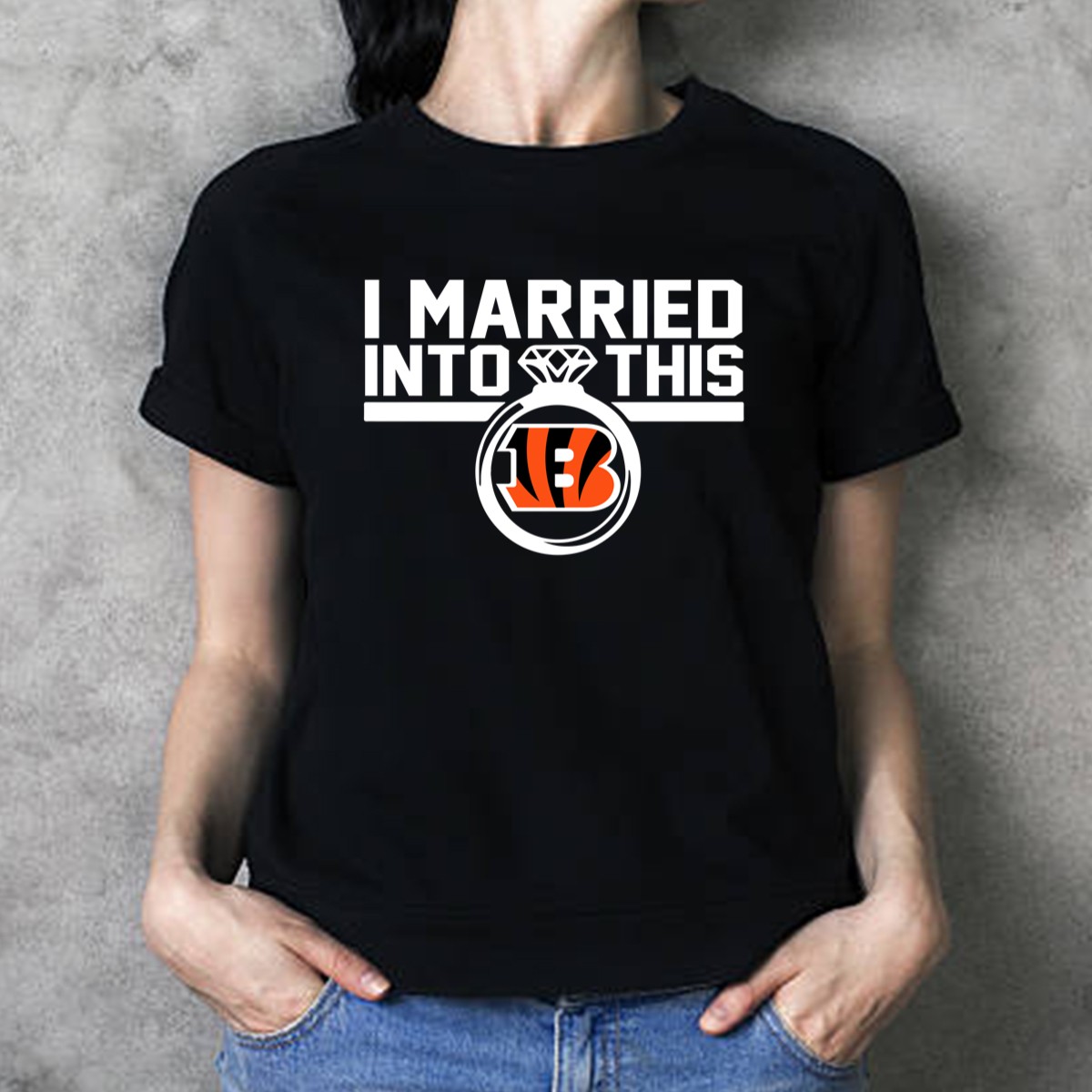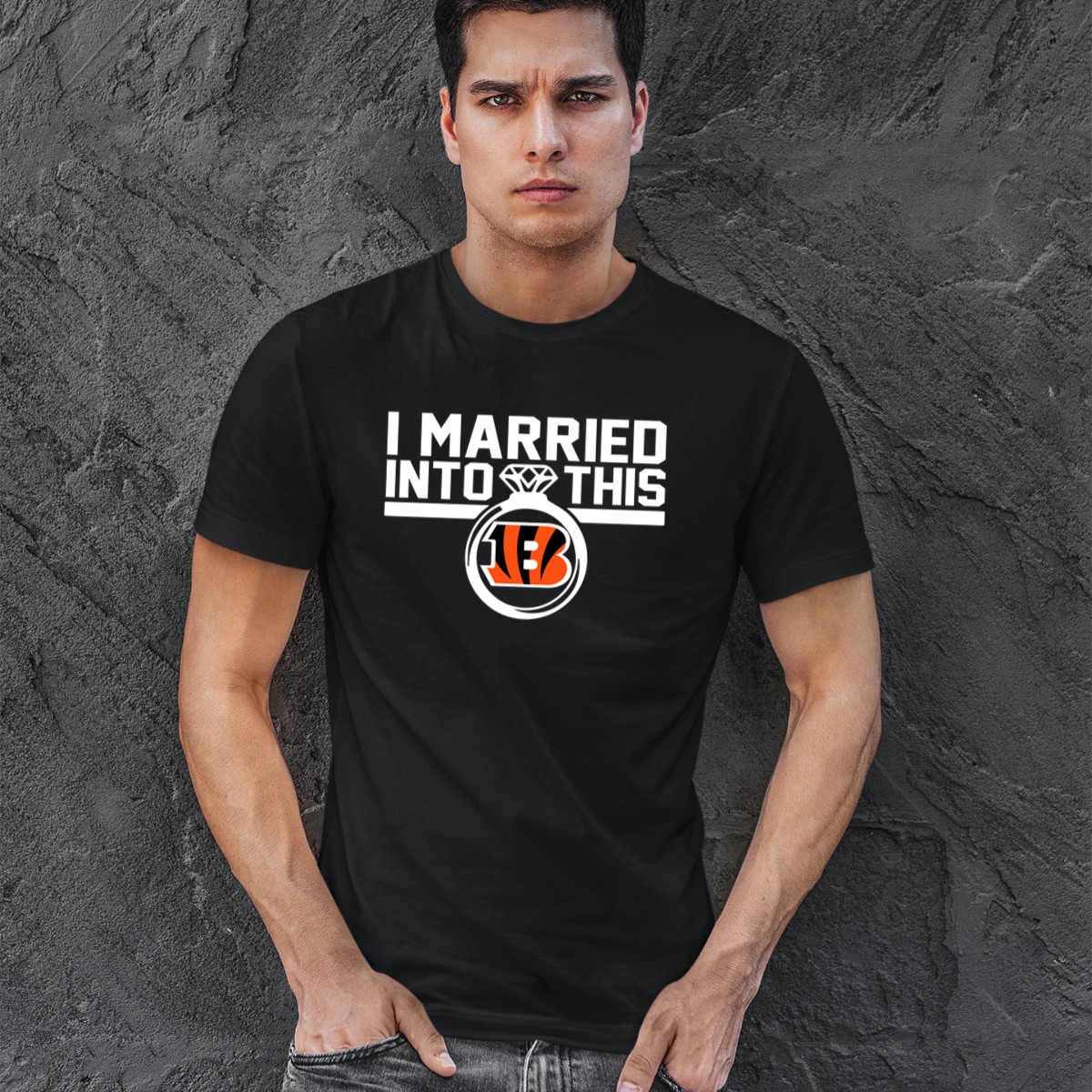 Show your love for the Cincinnati Bengals with our fan-made “I Married Into This” T-shirt! Perfect for dedicated Bengals fans and their families, this shirt celebrates the spirit of fandom and the joy of being part of a sports-loving household. Whether you’re cheering from the stands, hosting a game day party, or just enjoying a casual outing, this classic tee adds a touch of playful pride to your wardrobe. Made for comfort and style, it’s a must-have for every Bengals enthusiast!