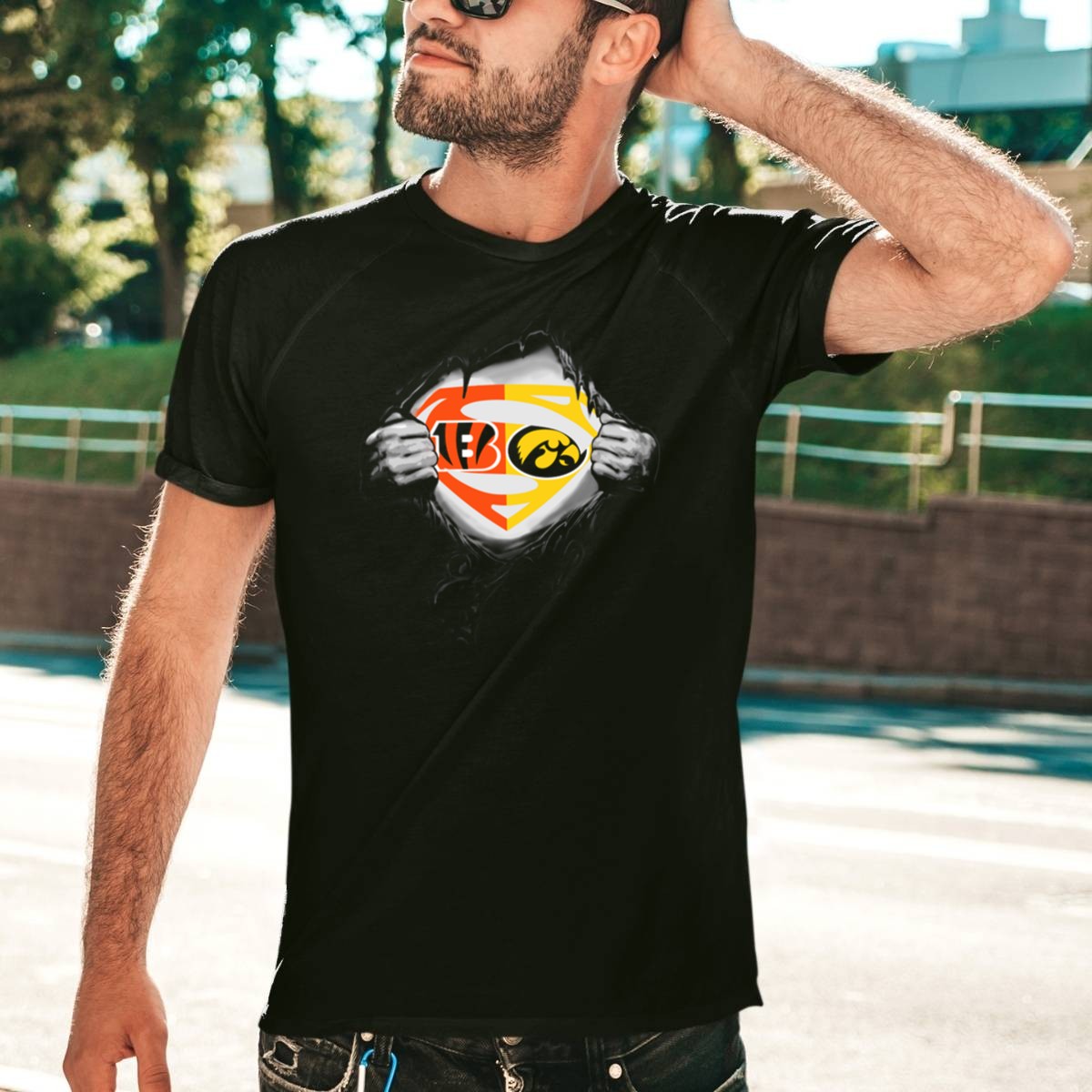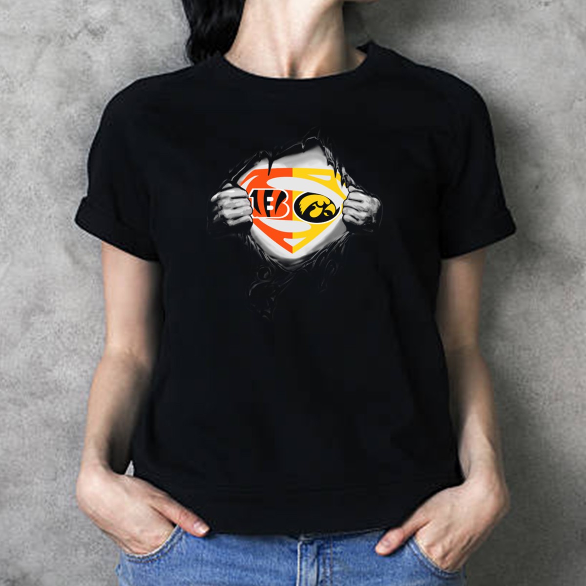 Show off your team spirit with our Cincinnati Bengals Iowa Hawkeyes Superman Emblem Mix T-Shirt! Perfect for fans who love to blend their passion for football with a touch of superhero flair, this shirt is ideal for casual wear, themed events, or just lounging around. Made for comfort and style, it’s a unique piece that proudly showcases your allegiance while ensuring you stand out in the crowd.