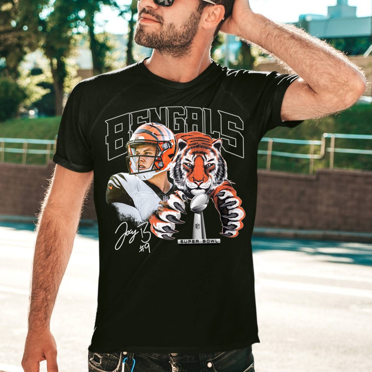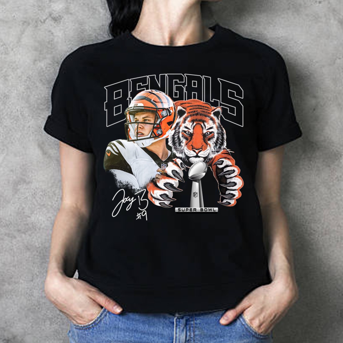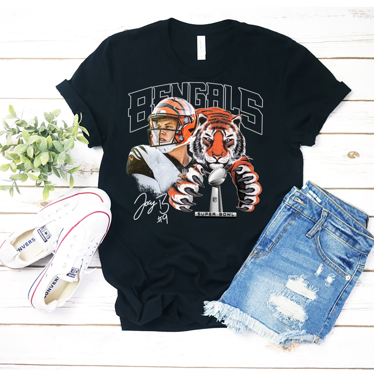 Show your unwavering support for the Cincinnati Bengals and the incredible Joe Burrow with our fan-made LVI Super Bowl Signature T-Shirt! Perfect for die-hard fans, this classic tee is designed for casual wear, themed events, or daily outings, allowing you to proudly display your team spirit in style. Made in the USA, this shirt features a unique and eye-catching design that sets you apart from the crowd.