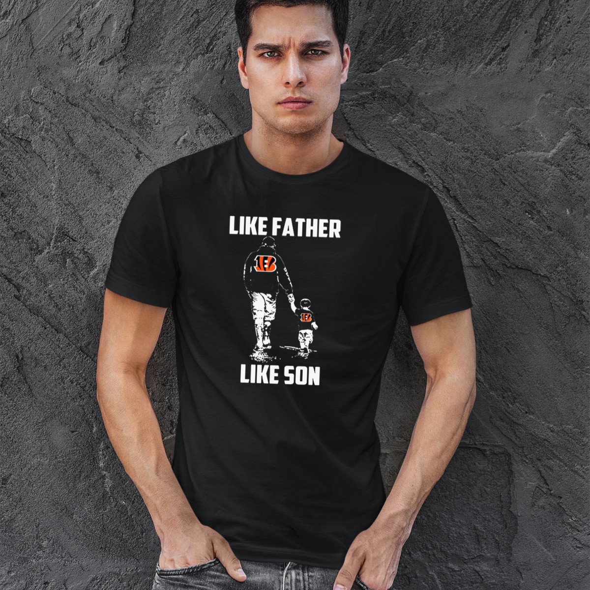 Show your Bengals pride with our “Like Father Like Son” T-shirt, perfect for dads and their little fans! Whether you’re heading to a game, a family gathering, or just enjoying a casual day out, this fan-made design is a great way to celebrate your love for Cincinnati football. Made for comfort and style, it’s a must-have for any Bengals supporter wanting to share their passion with the next generation.
