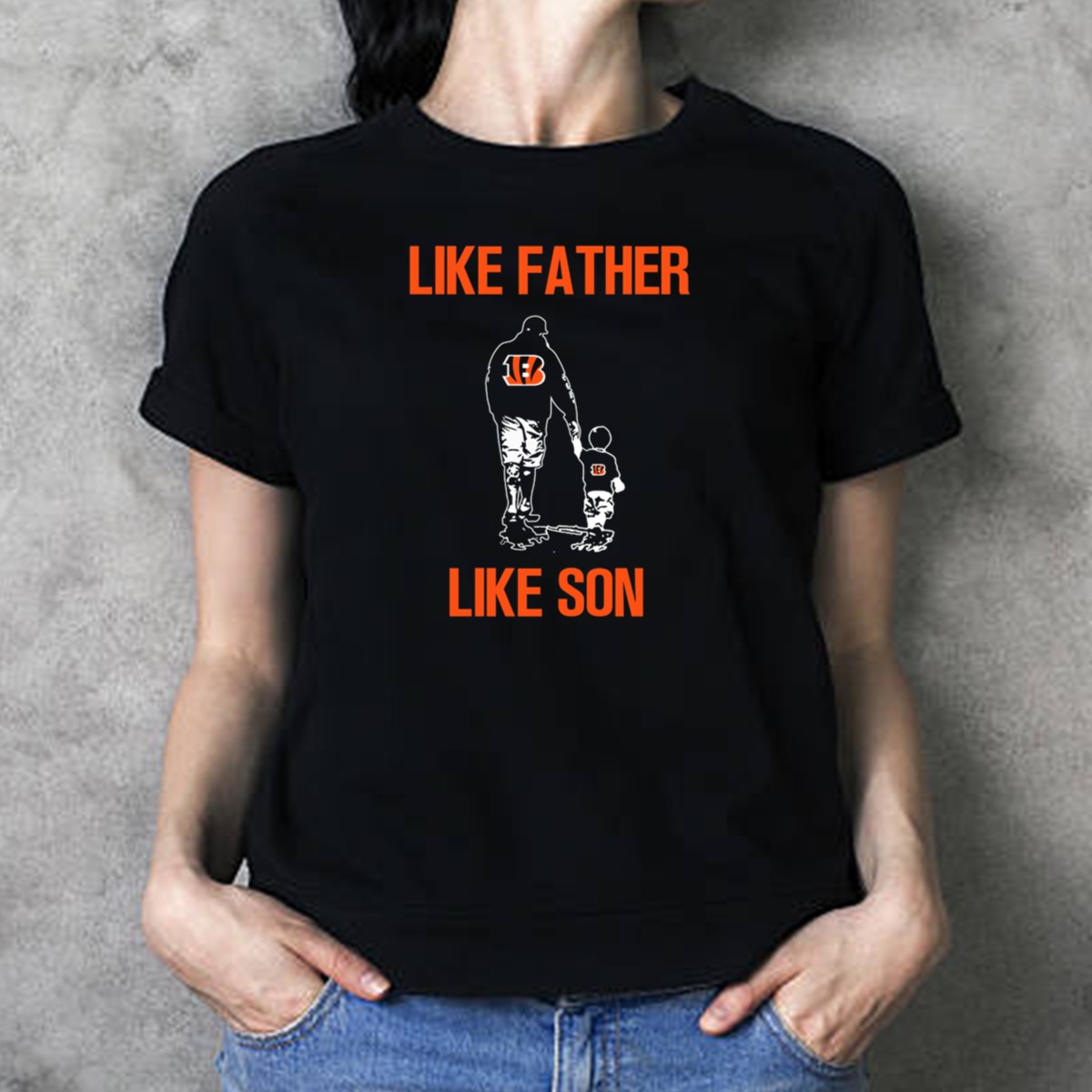 Show your love for the Cincinnati Bengals and celebrate the bond between fathers and sons with this eye-catching “Like Father Like Son” T-shirt. Perfect for game day, family gatherings, or casual outings, this fan-made design is ideal for Bengals enthusiasts of all ages. Made with care in the USA, this T-shirt combines comfort and style for a standout piece in any Bengals fan’s wardrobe.