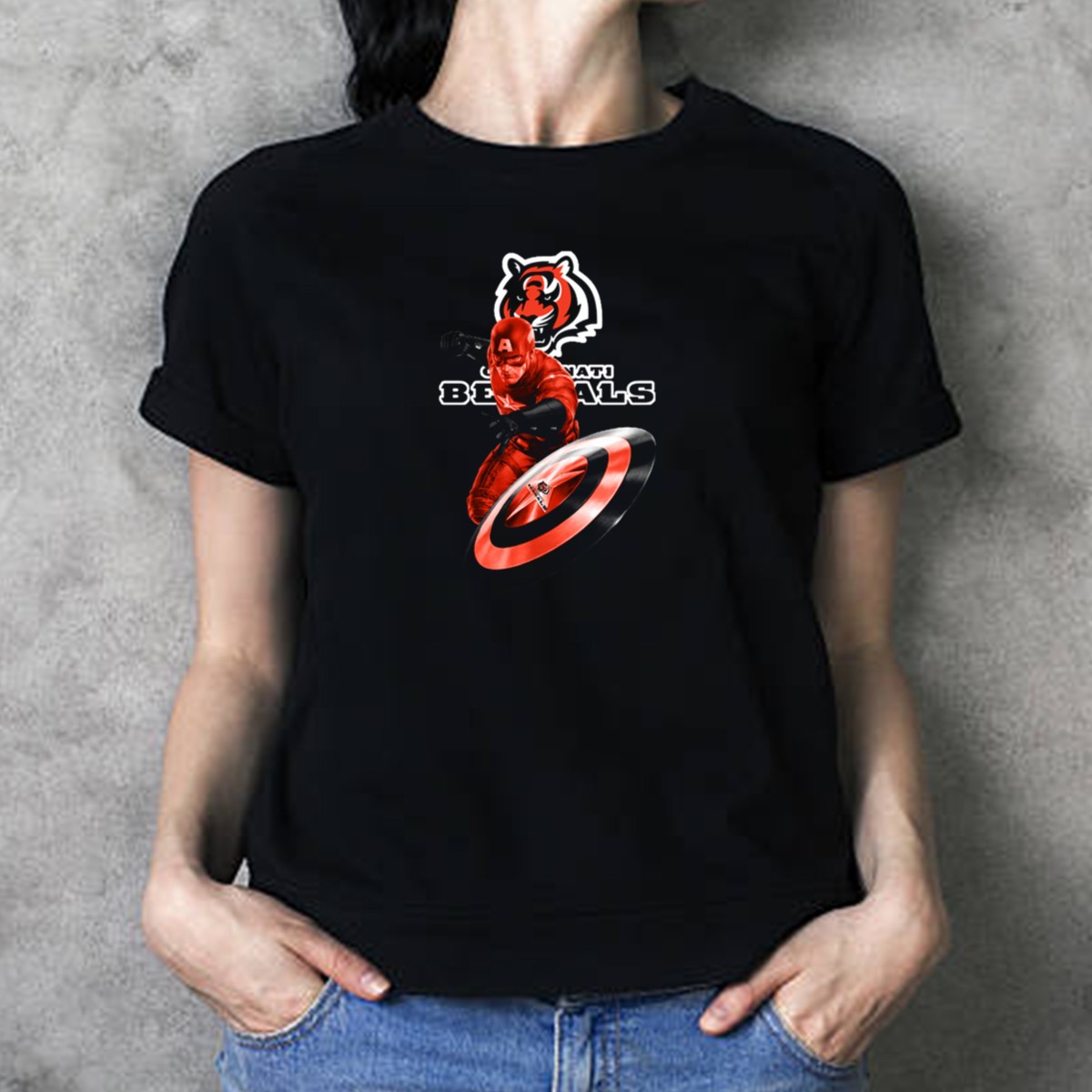 Cincinnati Bengals Marvel Captain America Shield Football Hero T-Shirt