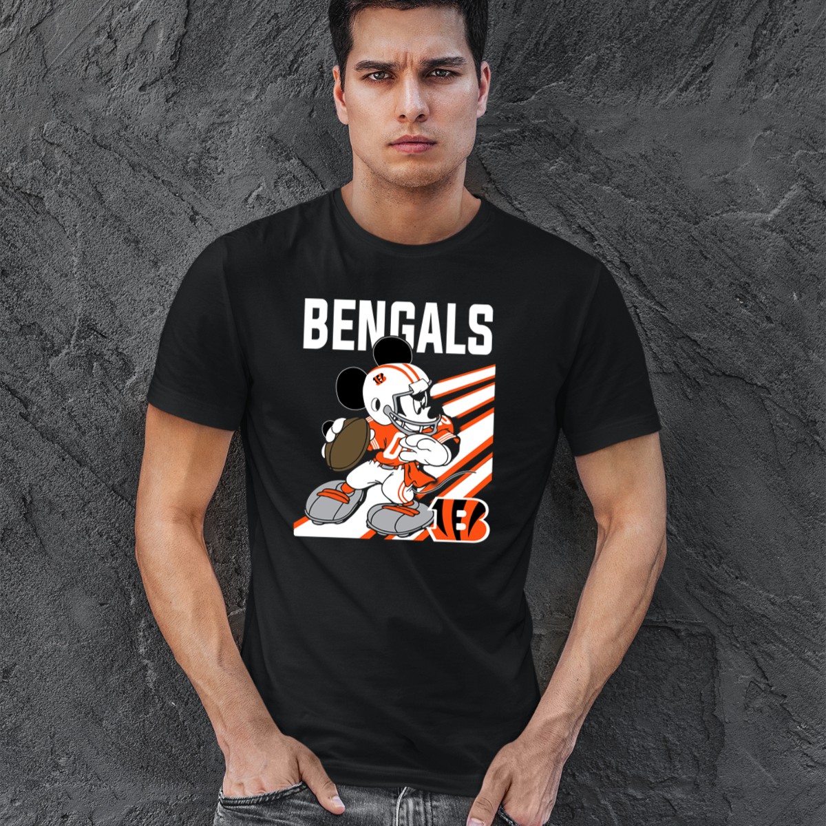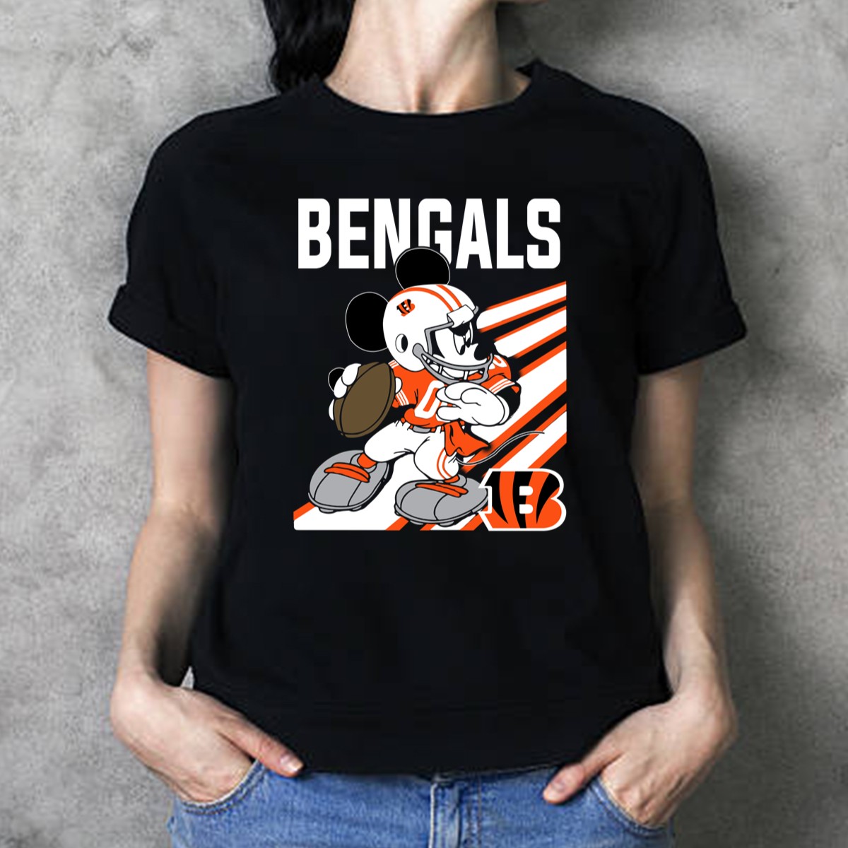 Show your love for the Cincinnati Bengals and the magic of Disney with our exclusive fan-made Mickey Mouse NFL T-shirt! This unique design blends the iconic charm of Mickey Mouse with the spirited energy of Bengals fandom, making it perfect for casual wear, themed events, or simply cheering on your team from home. Whether you’re at the game or hanging out with friends, this classic tee is sure to make a statement and showcase your playful side.