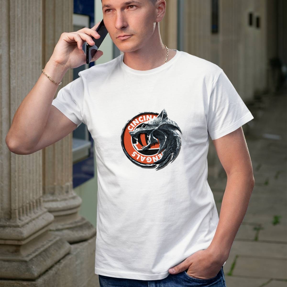 Show your unwavering support for the Cincinnati Bengals with our fan-made Wolf Logo T-shirt! This stylish and comfortable graphic tee is perfect for die-hard fans who want to showcase their team spirit during casual outings, themed events, or daily wear. Made and printed in the USA, this shirt combines quality materials with a unique design that will make you stand out in the crowd.