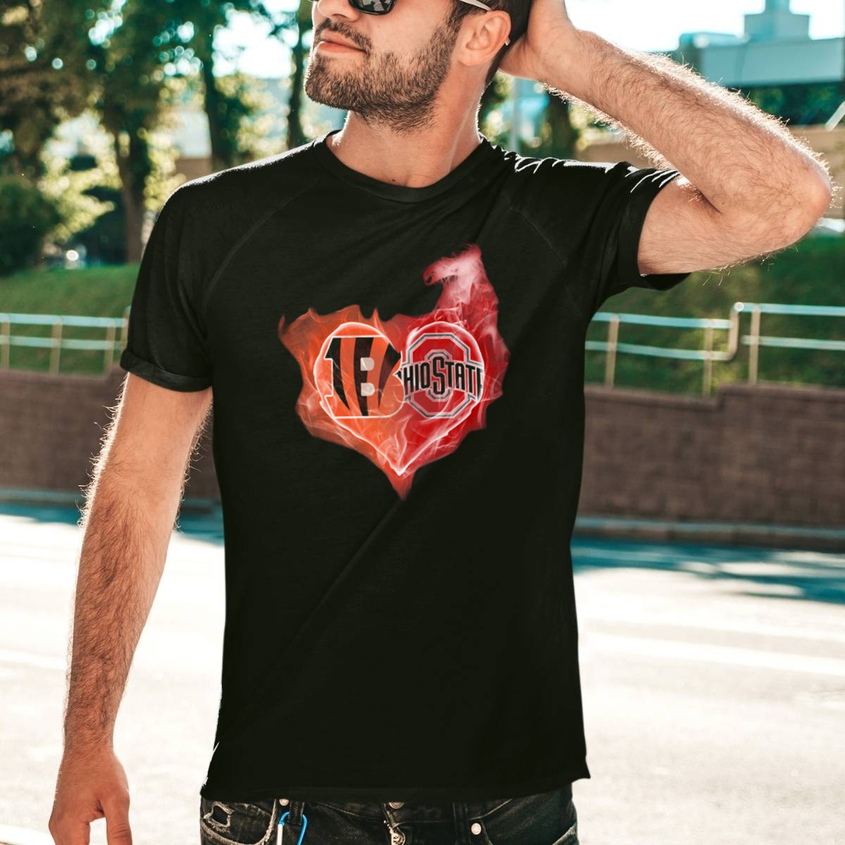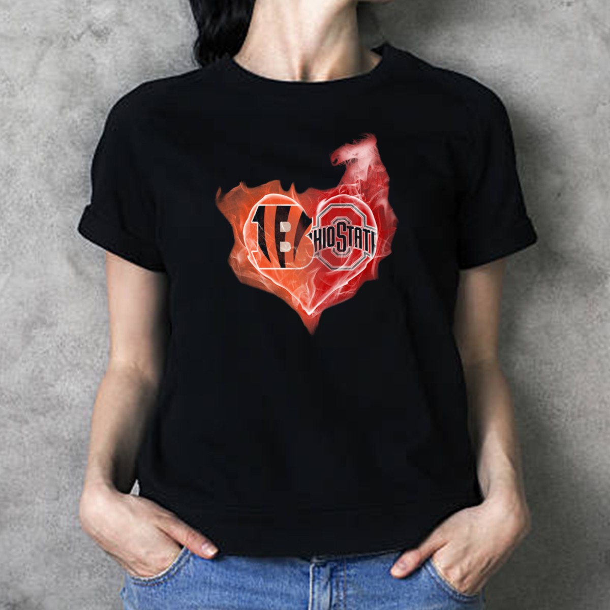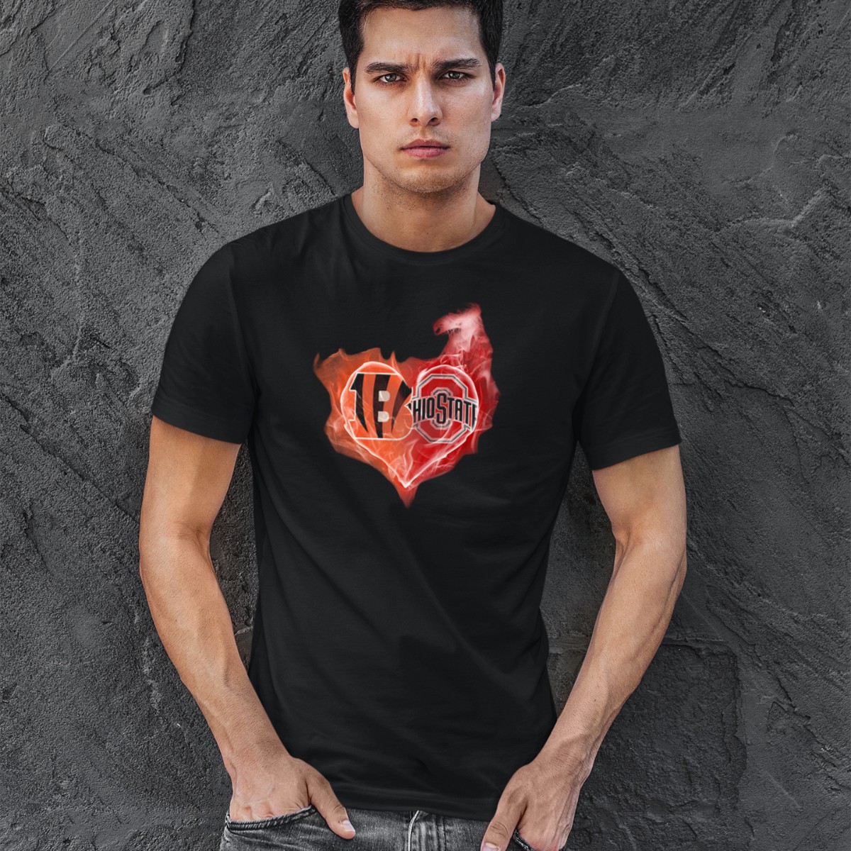 Show your fierce passion for both the Cincinnati Bengals and Ohio State Buckeyes with our unique Fire Heart T-Shirt! Perfect for dedicated fans who want to showcase their team spirit, this shirt is ideal for casual outings, themed events, or just lounging at home. Made from high-quality materials and featuring a striking fan-made design printed in the USA, this T-shirt blends comfort with style, making it a must-have for any sports enthusiast.
