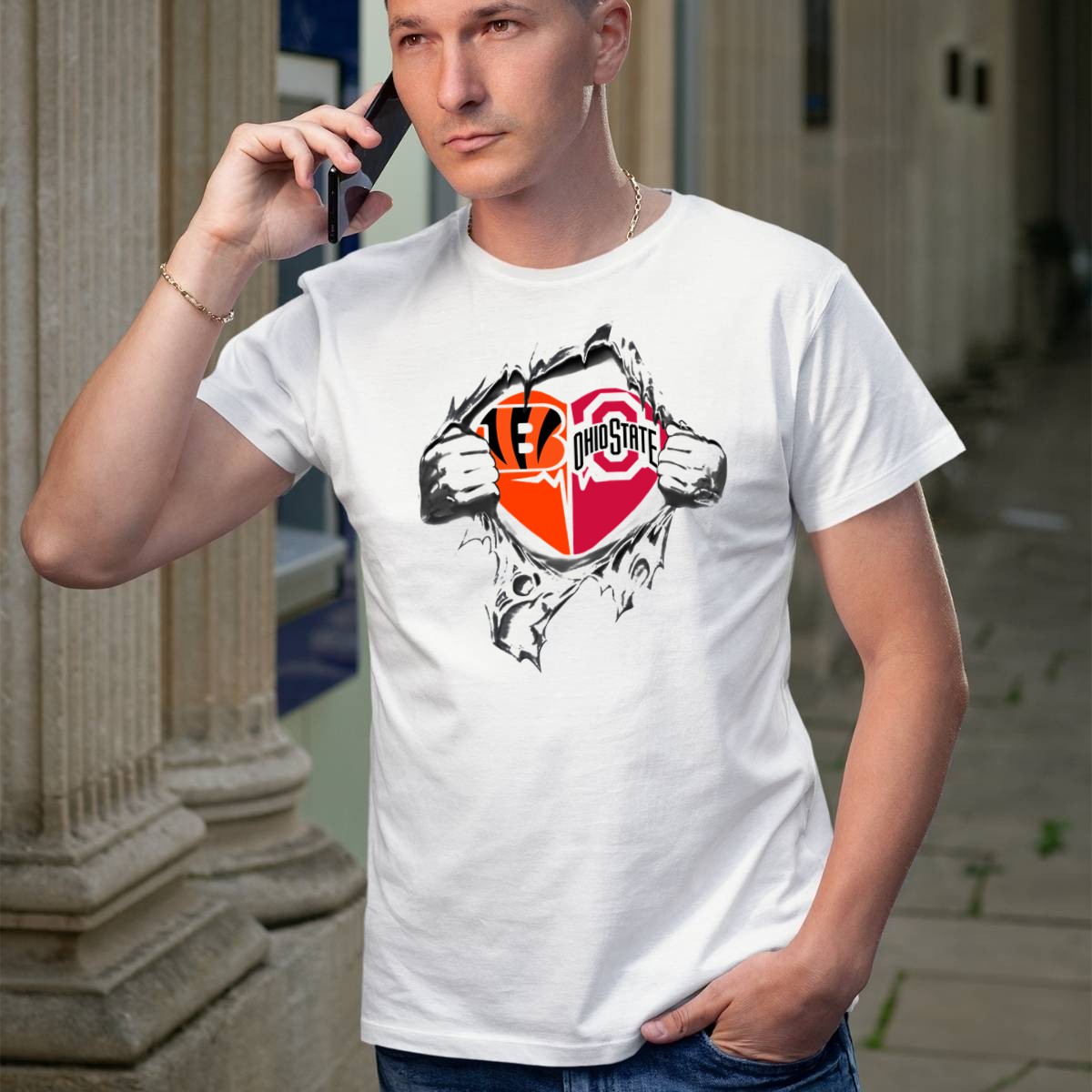 Show your love for Cincinnati with our fan-made Cincinnati Bengals Ohio State Buckeyes Heart Logo T-Shirt! Perfect for die-hard fans, this shirt combines team spirit with a stylish design that’s ideal for casual outings, themed events, or simply lounging at home. Crafted for comfort and durability, it features a unique heart logo that proudly showcases your allegiance to both the Bengals and Buckeyes, making it a must-have addition to your game day wardrobe.