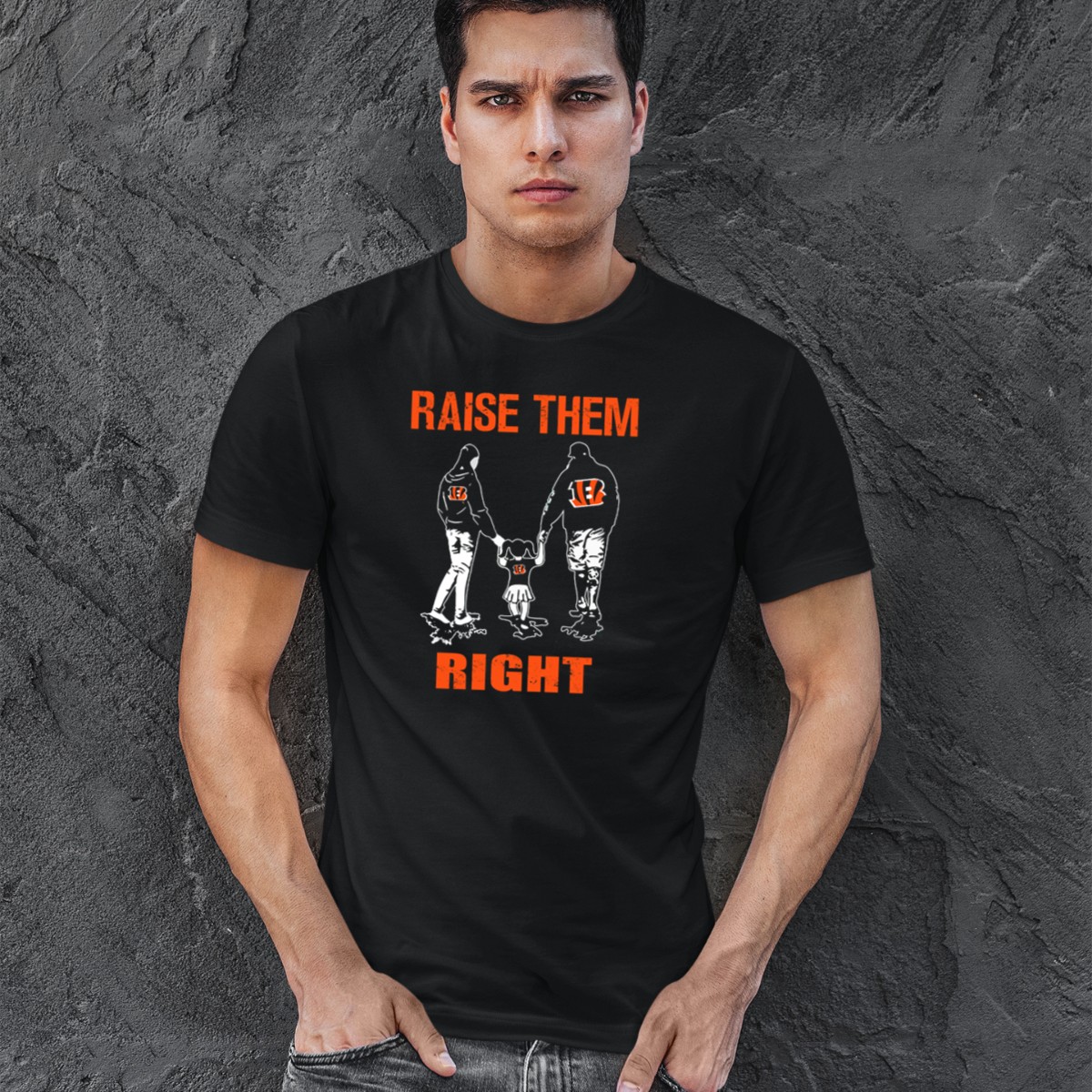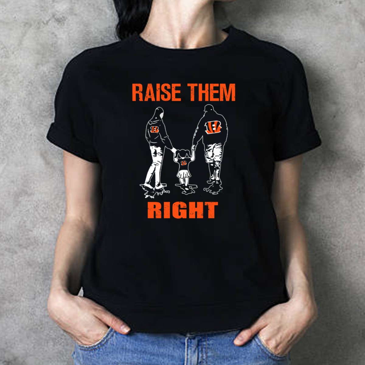 Showcase your pride for the Cincinnati Bengals with our “Raise Them Right” Family Football Fans T-Shirt! Perfect for devoted fans, this shirt is designed for casual outings, themed events, and everyday wear. Its unique fan-made design, printed right here in the USA, captures the spirit of community and family loyalty, making it a must-have for any Bengals supporter.