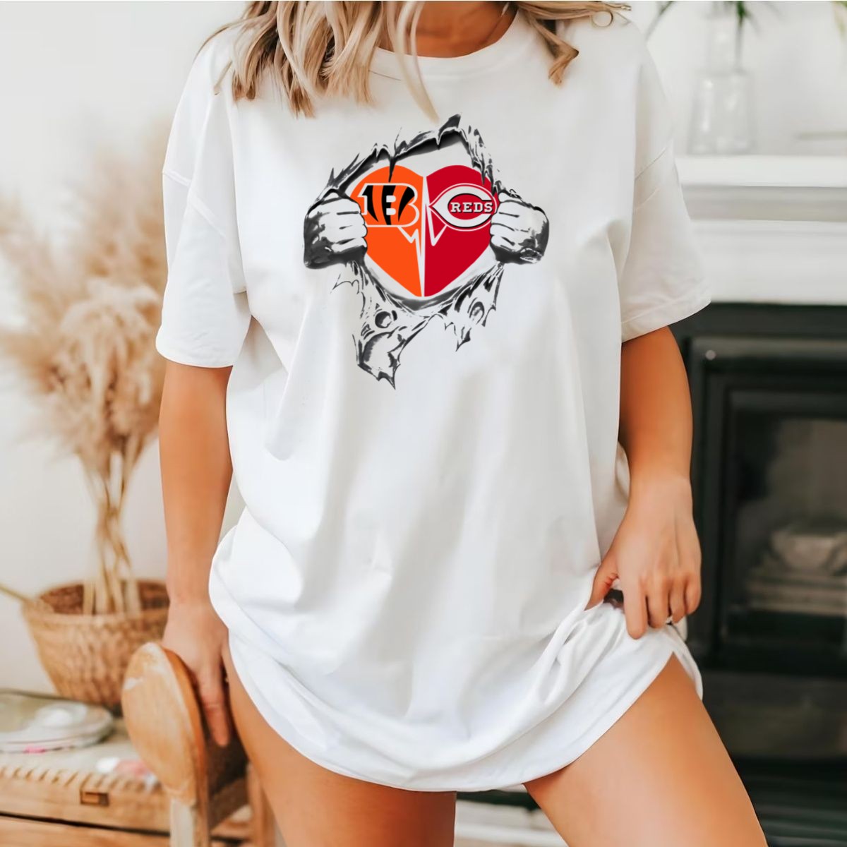 Show your love for the Cincinnati Bengals with this unique Reds Logo Heart Combination T-Shirt! Perfect for die-hard fans and casual wearers alike, this shirt combines comfort and style, making it an ideal choice for game days, themed events, or just hanging out with friends. Its fan-made design is proudly printed in the USA, ensuring you stand out in any crowd while showcasing your team spirit.