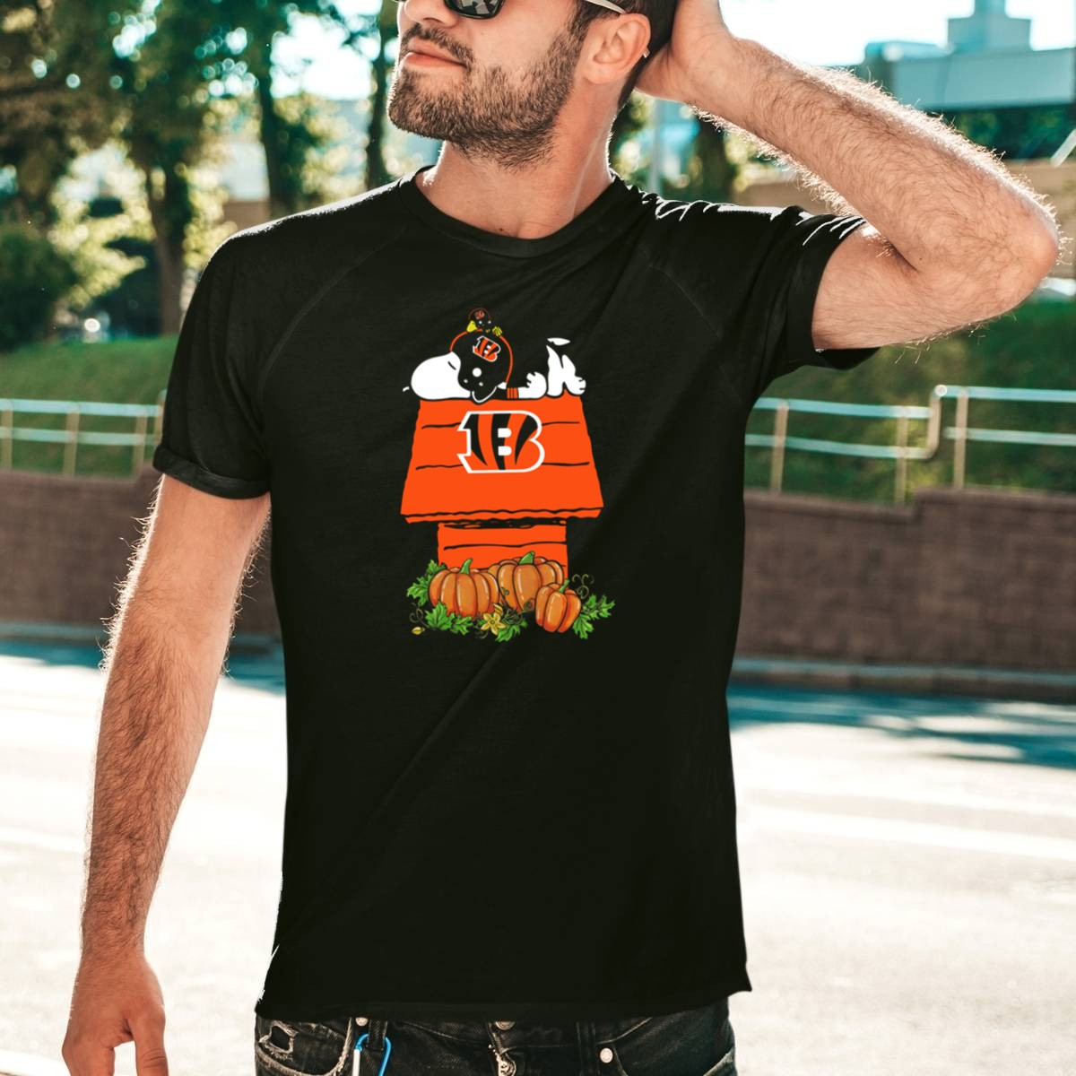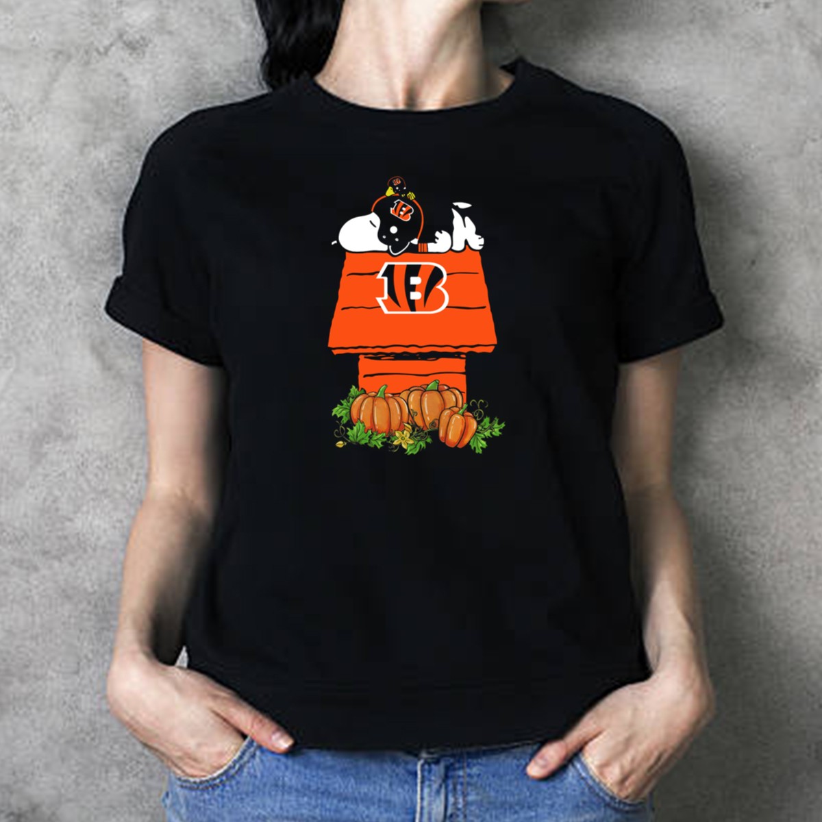 Celebrate Halloween in style with our Cincinnati Bengals Snoopy Doghouse Pumpkin T-Shirt! Perfect for die-hard fans and casual wearers alike, this fan-made design combines the spirit of the Bengals with a fun, festive twist featuring Snoopy. Ideal for themed events, game days, or just lounging around, this shirt brings a touch of whimsy and team pride to your wardrobe. Made in the USA, it ensures you stand out in comfort and style all season long.