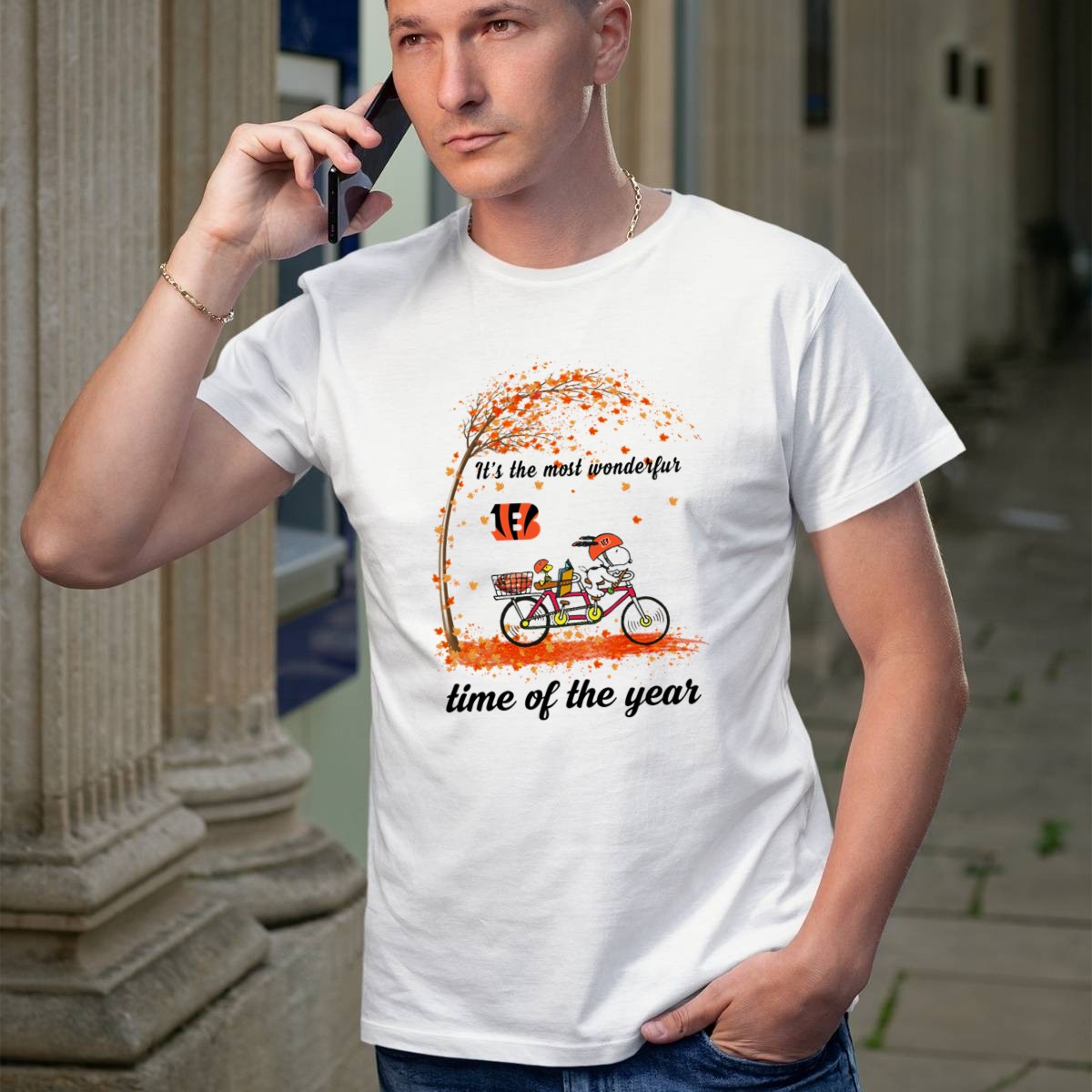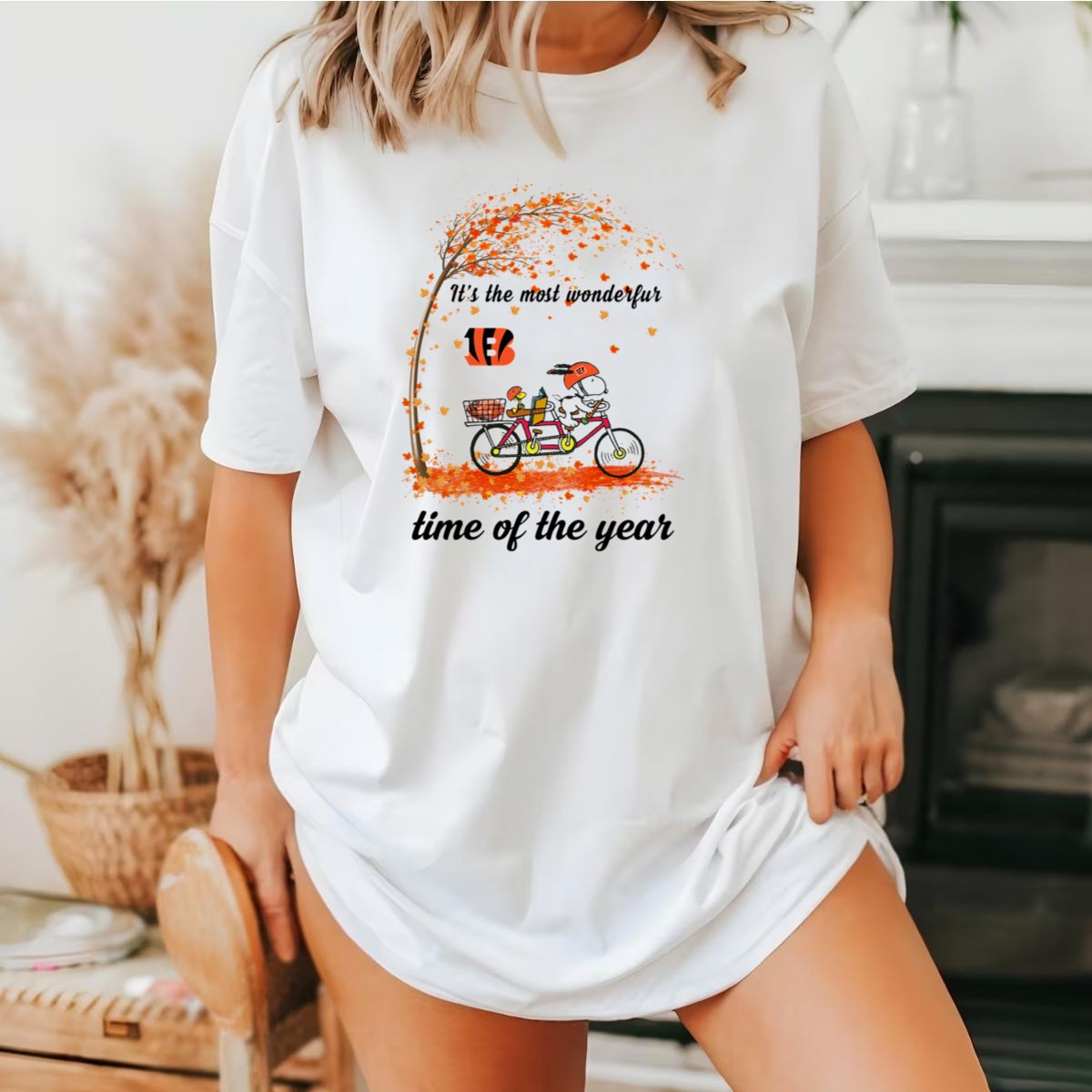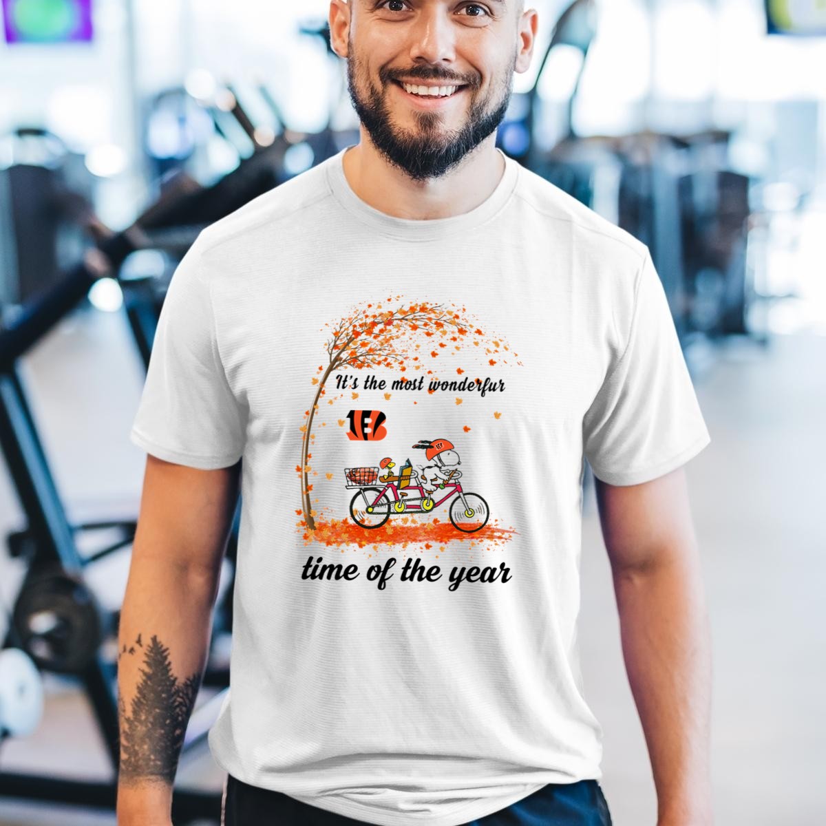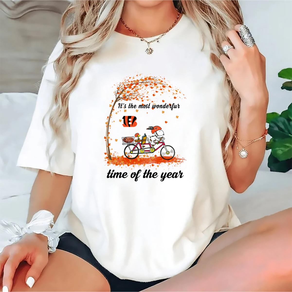 Celebrate the spirit of autumn and your love for the Cincinnati Bengals with our exclusive Snoopy “It’s The Most Wonderful Time Of The Year” T-shirt! Perfect for fans of all ages, this shirt combines classic comfort with a playful design, making it ideal for casual outings, themed events, or simply lounging at home. With its unique fan-made graphic printed in the USA, this T-shirt is sure to become a favorite in your wardrobe.