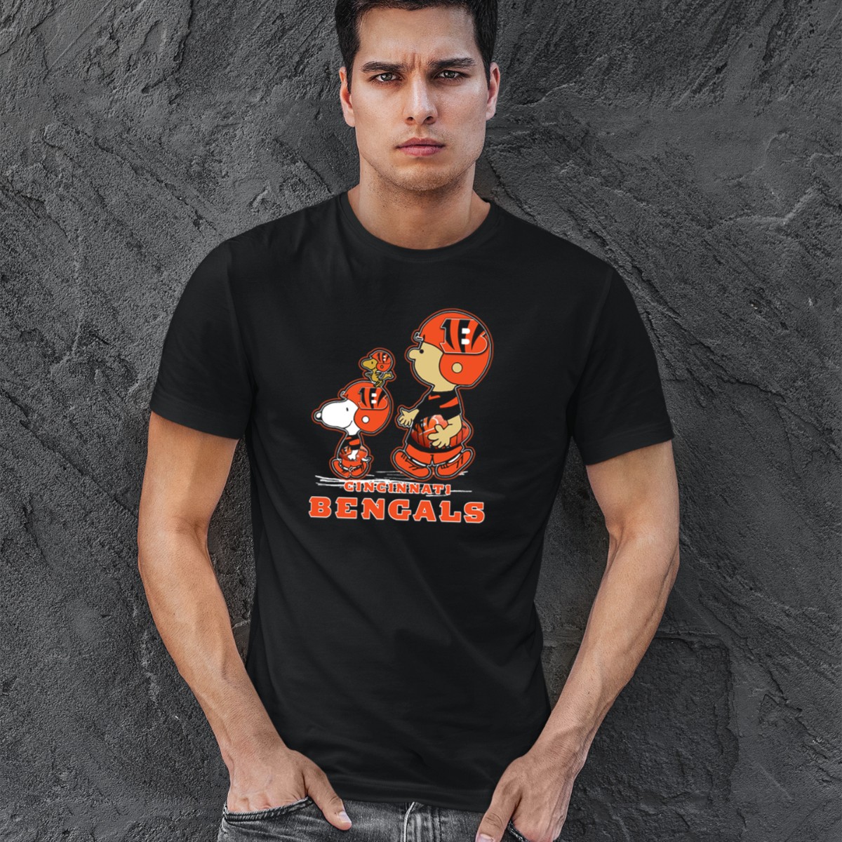 Show your love for the Cincinnati Bengals with our fan-made Charlie Brown Snoopy Woodstock Football Helmet T-Shirt! Perfect for die-hard fans and casual wearers alike, this shirt combines classic cartoon charm with your favorite football team. Ideal for game days, themed events, or simply lounging around, its unique design is sure to make a statement wherever you go. Celebrate your passion for football in style and comfort with this high-quality tee, proudly printed in the USA.