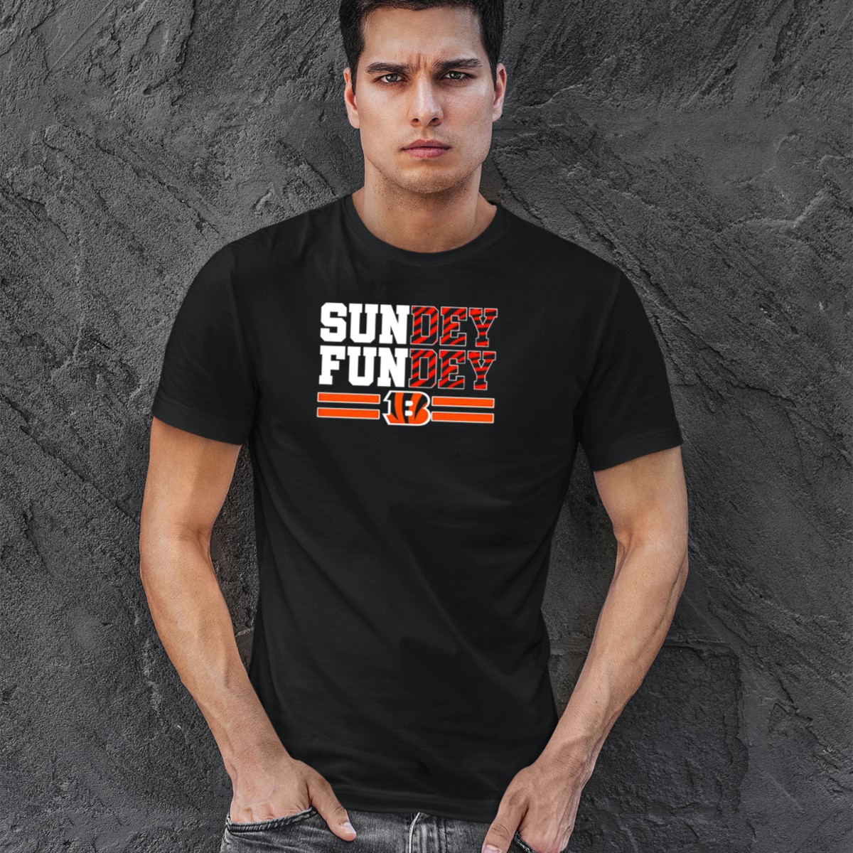 Show your unwavering support for the Cincinnati Bengals with our Sunday Funday B Logo T-Shirt! Perfect for die-hard fans and casual wearers alike, this shirt features a striking fan-made design that celebrates game day in style. Whether you’re cheering from the stands, hosting a watch party, or just out and about, this tee is a must-have for every Bengals enthusiast. Embrace the spirit of the game with a shirt that combines comfort, durability, and a vibrant design, all proudly printed in the USA.