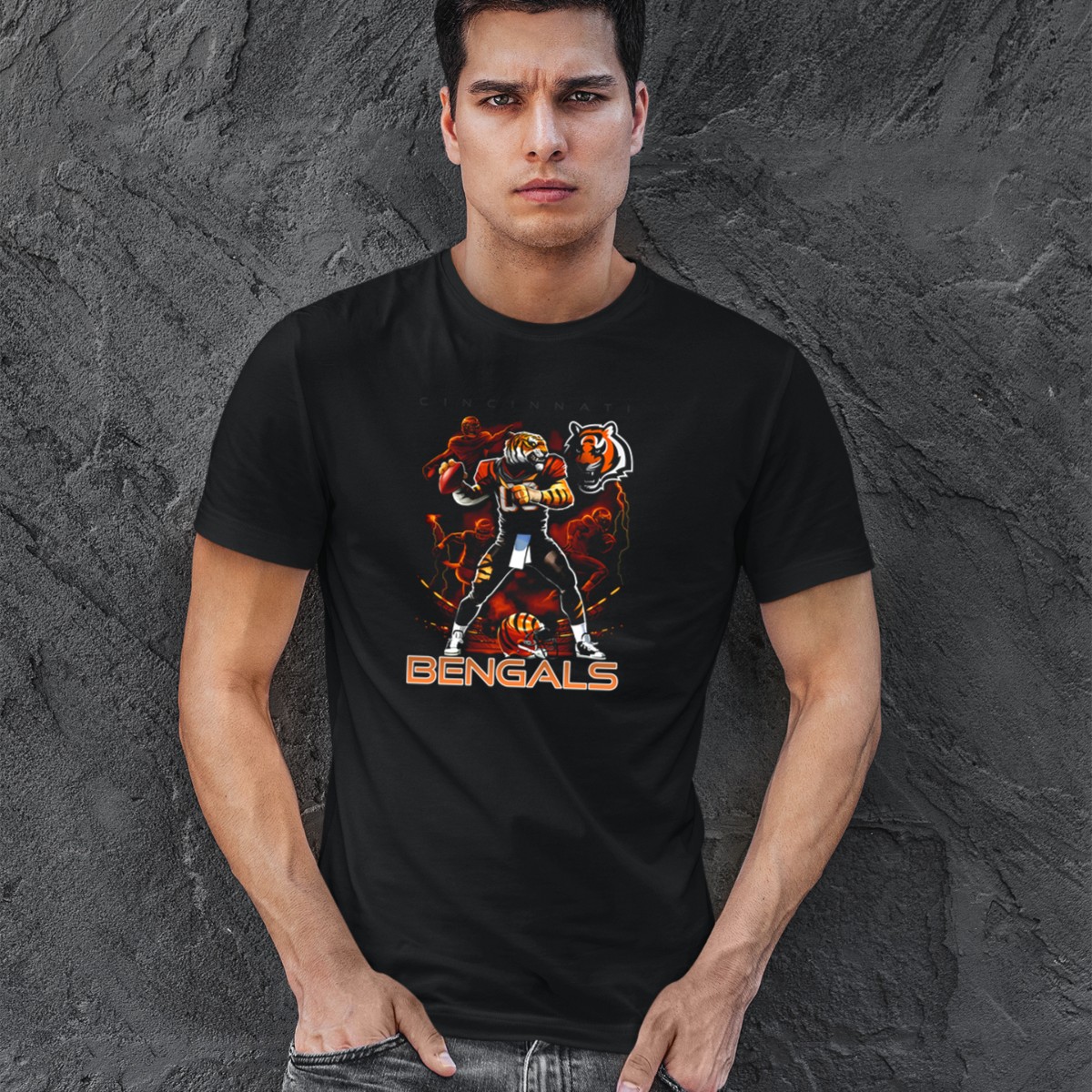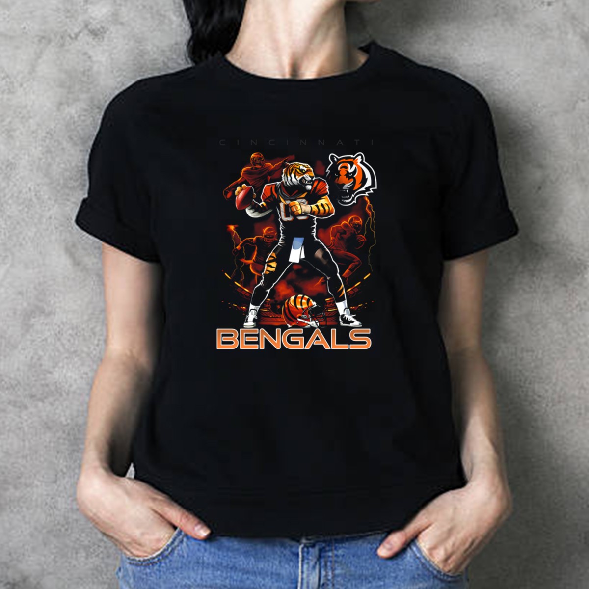 Celebrate your love for the Cincinnati Bengals with this iconic Tiger Football Player T-shirt! Perfect for die-hard fans, this shirt combines comfort and style, making it an ideal choice for casual outings, themed events, or just relaxing at home. The eye-catching fan-made design, proudly printed in the USA, showcases your team spirit while ensuring you stand out in the crowd during game day or any casual occasion.