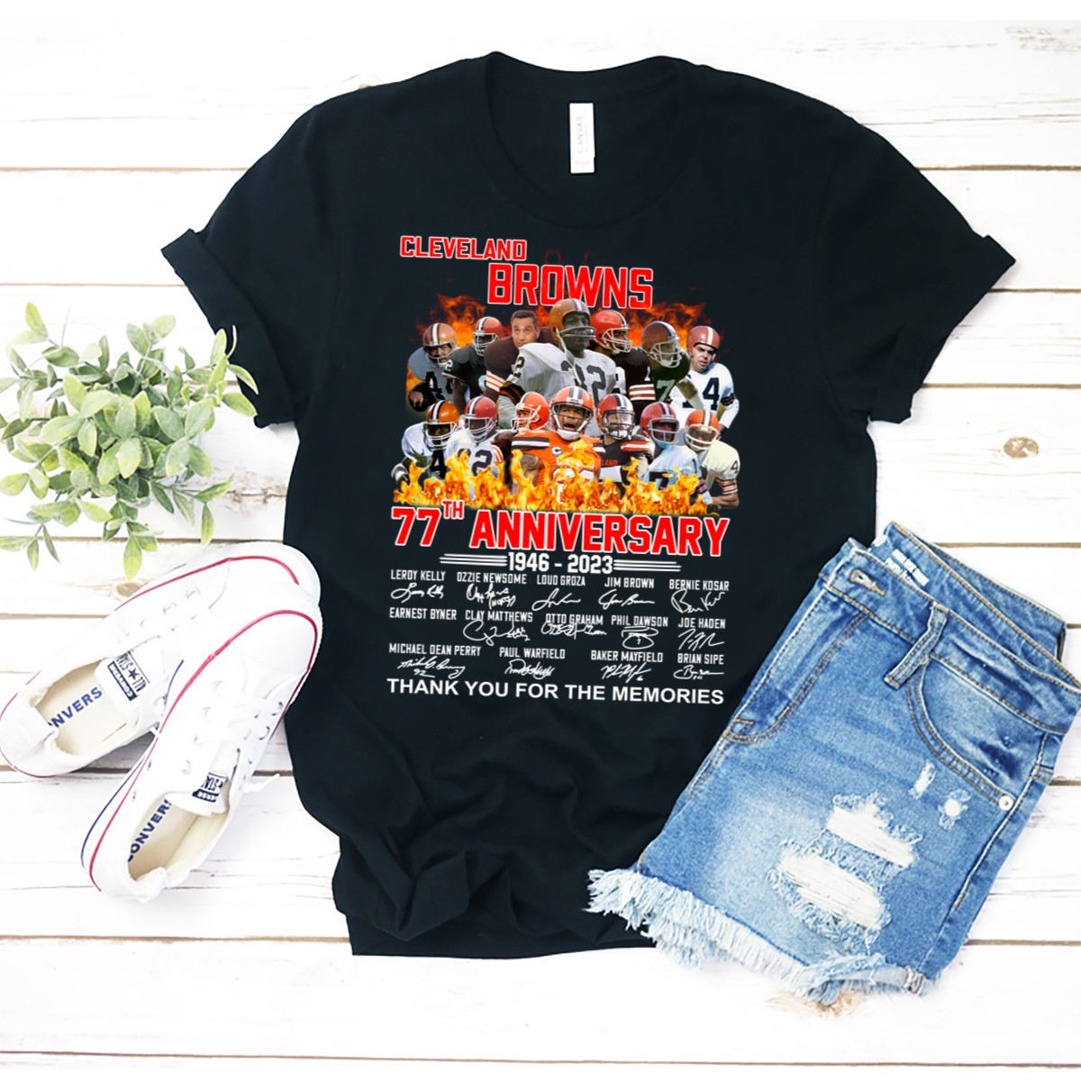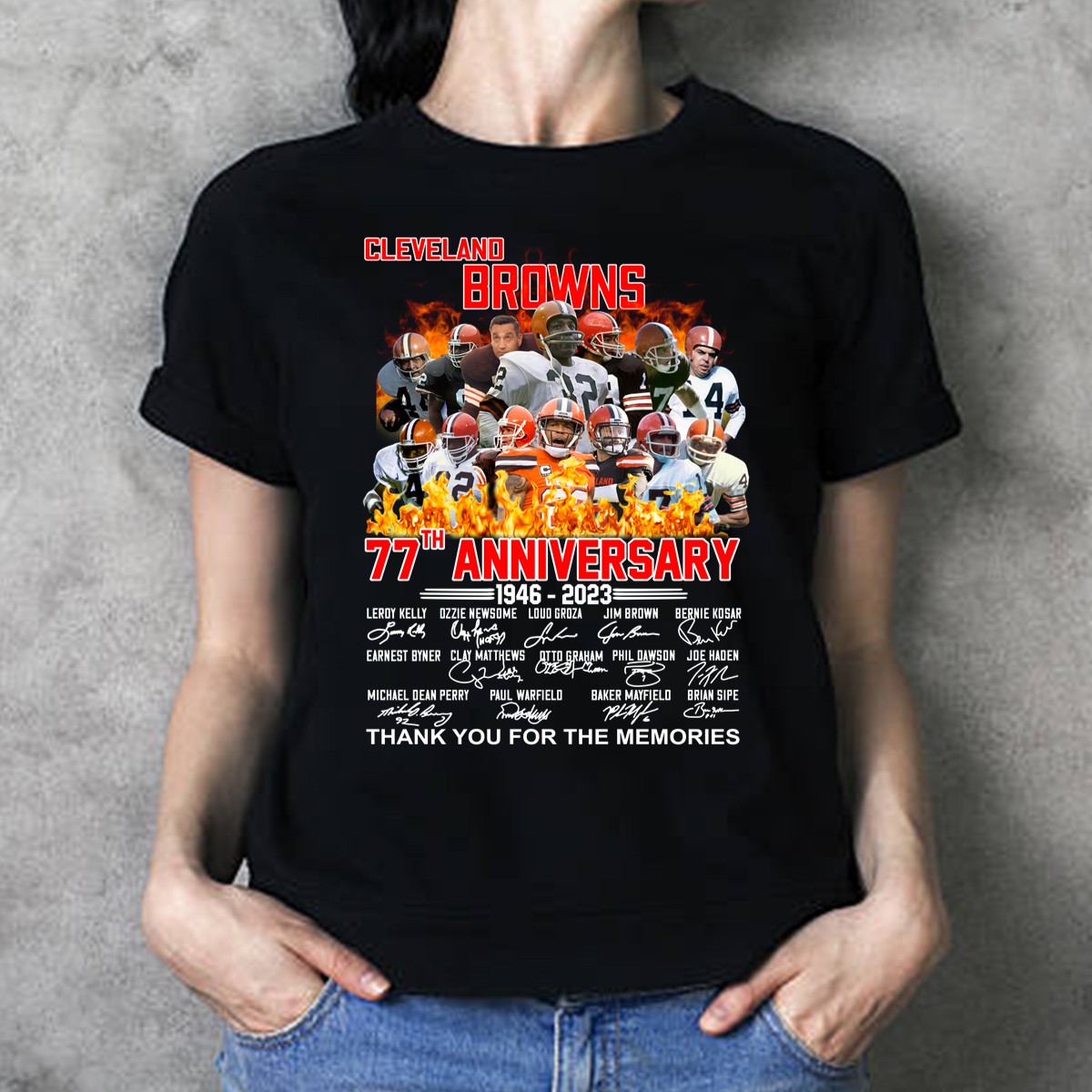Celebrate the rich history of the Cleveland Browns with our exclusive 77th Anniversary T-Shirt! Designed for passionate fans, this shirt showcases a unique fan-made graphic that highlights the team’s journey from 1946 to 2023. Perfect for casual outings, themed events, or simply showing off your team spirit, this comfortable and stylish tee is a must-have for any Browns supporter looking to commemorate this milestone in style.