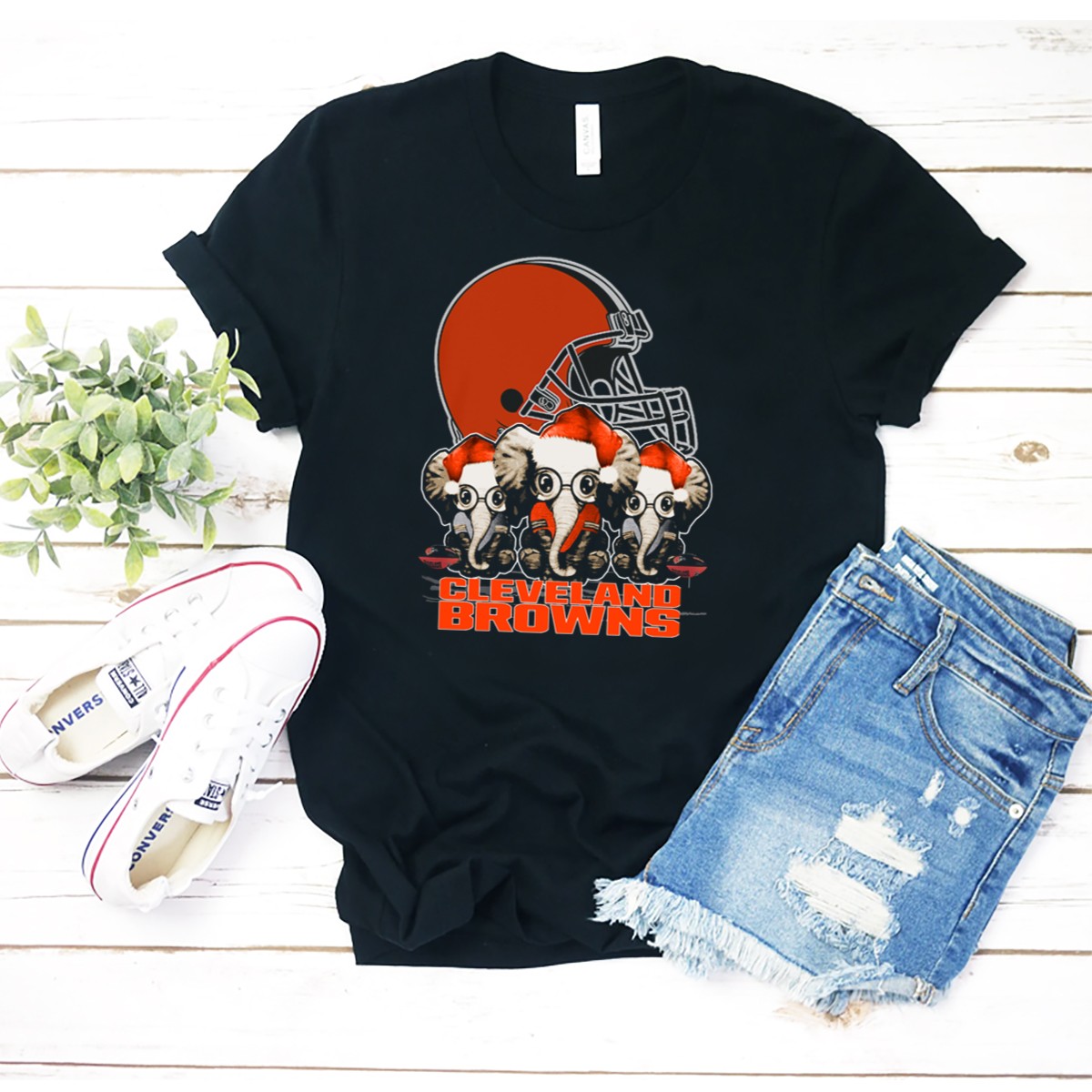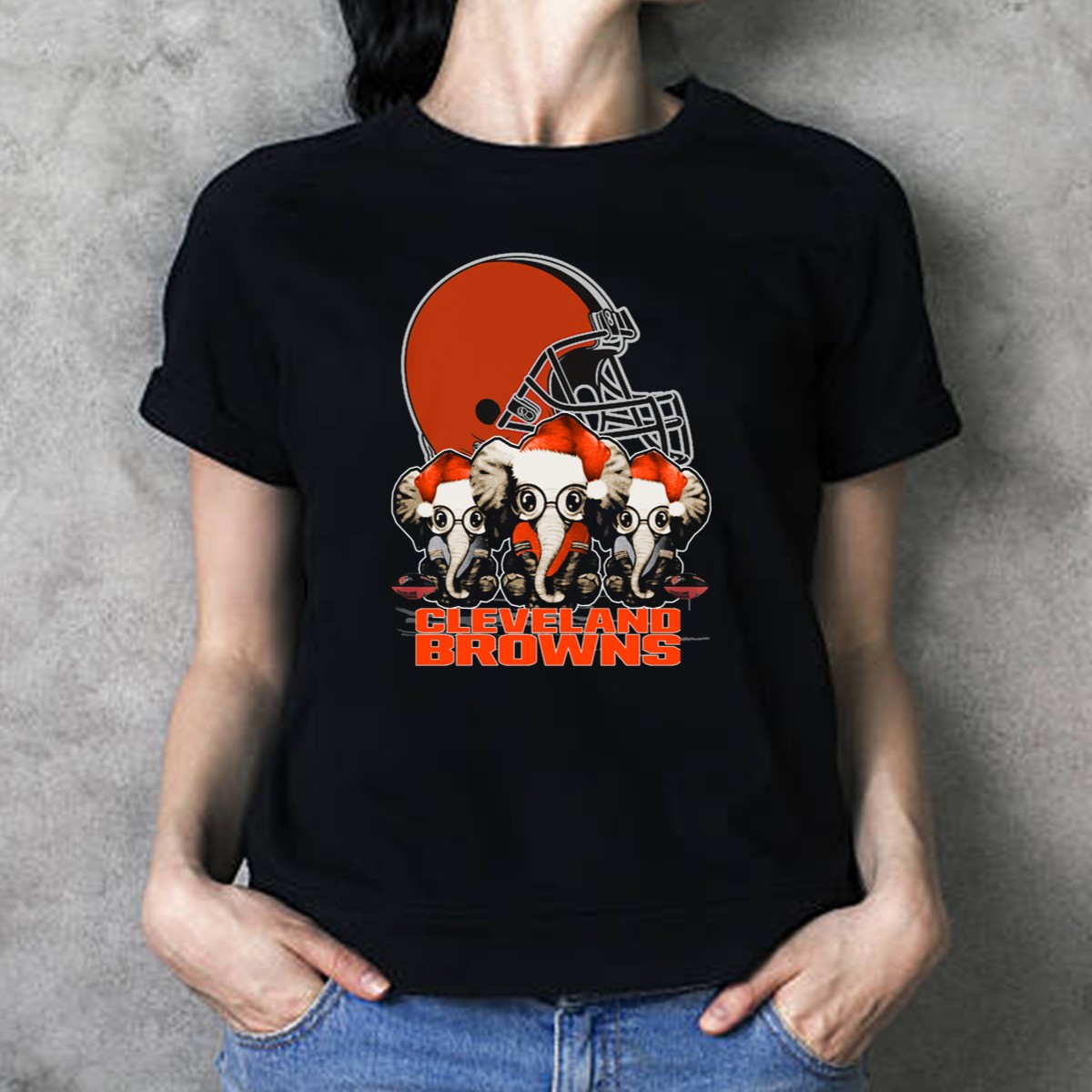 Celebrate the holiday season with a unique twist on your favorite football team! Our Cleveland Browns Christmas Elephants In Santa Hats Football Helmet T-Shirt is perfect for die-hard fans and those who love to spread festive cheer. Made for casual wear, themed events, or just a cozy day at home, this shirt combines your passion for the game with a playful holiday spirit. Stand out in the crowd and show your team pride with this fan-made design, printed right here in the USA!