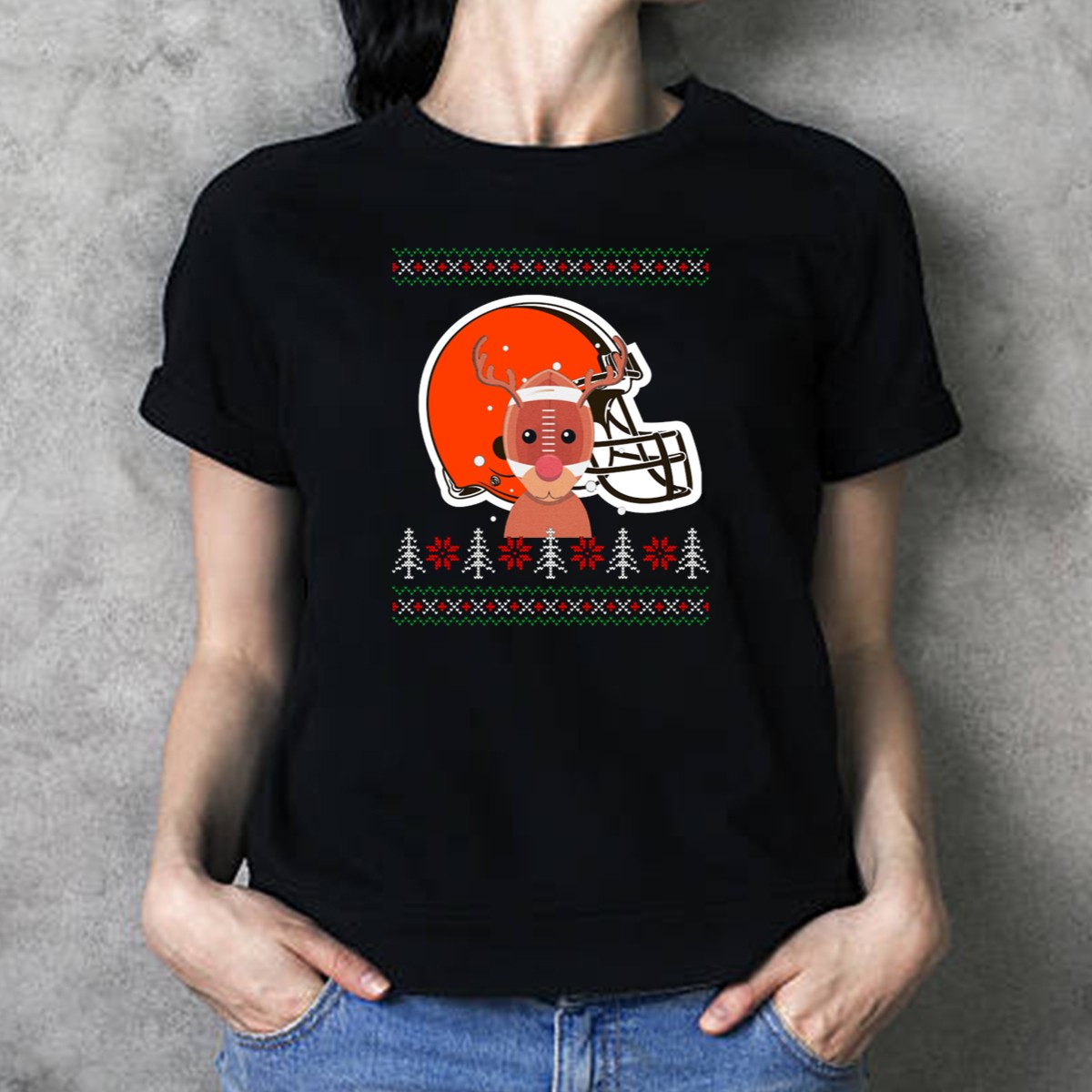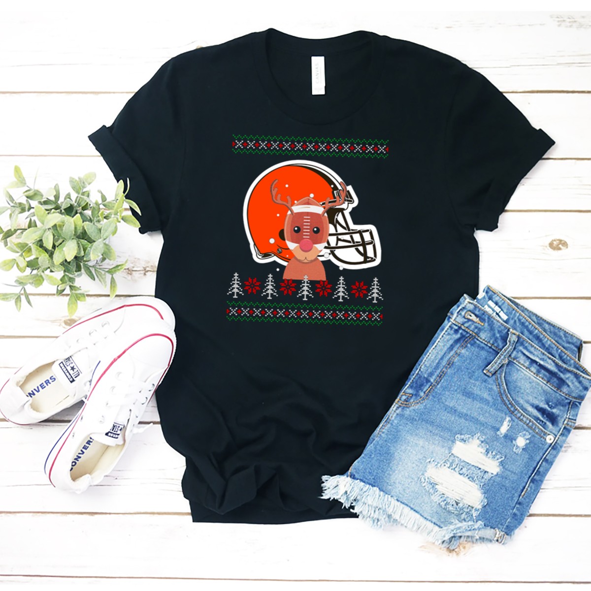 Cleveland Browns Christmas Reindeer Helmet T-Shirt
