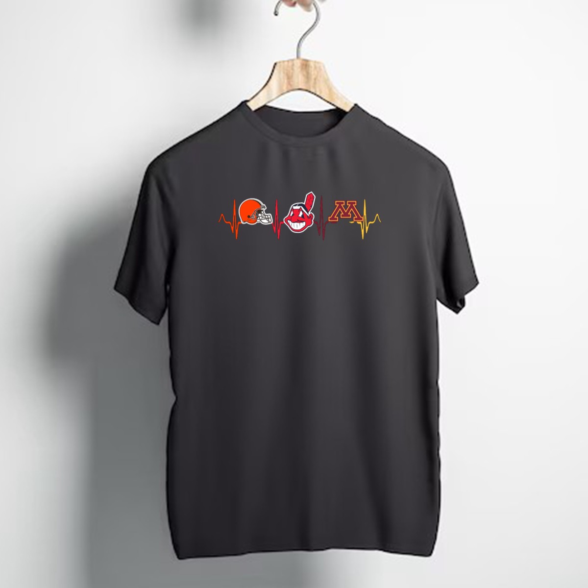 Show your love for Cleveland sports with our Cleveland Browns, Cleveland Indians, and Minnesota Golden Gophers Heartbeat T-Shirt! This fan-made design is perfect for die-hard supporters who want to showcase their passion at casual gatherings, themed events, or just during your daily wear. Made in the USA, this shirt combines comfort with style, making it an essential addition to any sports enthusiast’s wardrobe.