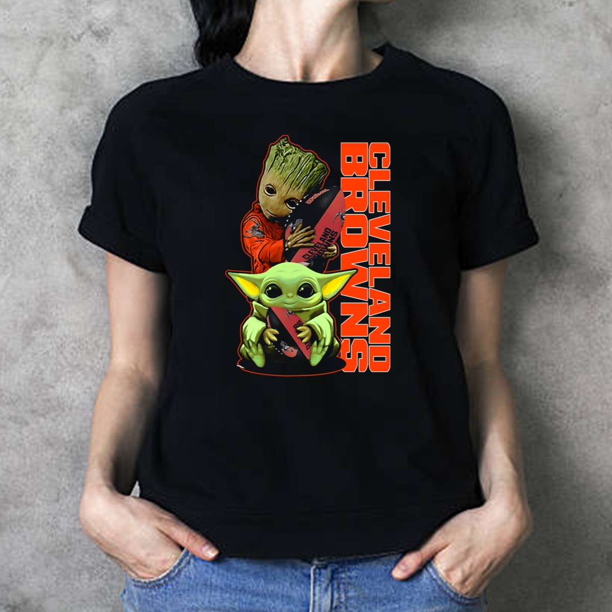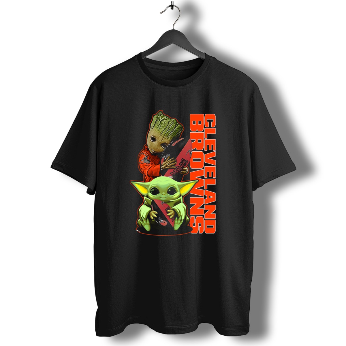 Show off your team spirit in a fun and unique way with our CLEVELAND BROWNS Groot and Baby Yoda Holding Football T-Shirt! Perfect for die-hard fans and casual wearers alike, this eye-catching design combines your love for the Browns with a pop culture twist. Ideal for game days, themed events, or just lounging around, it’s a must-have addition to your wardrobe that showcases both humor and fandom.