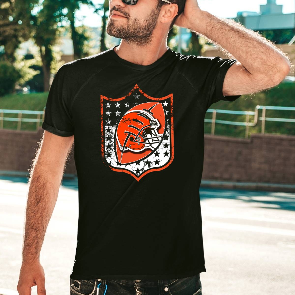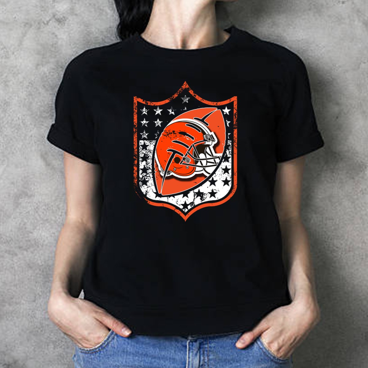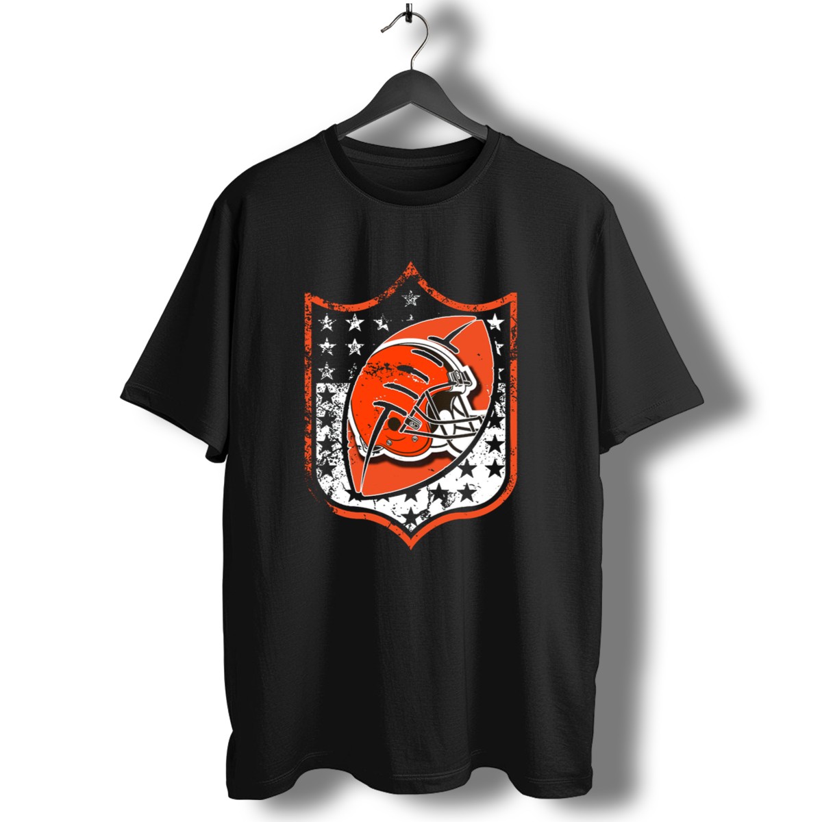 Show your unwavering support for the Cleveland Browns with our Helmet Stars And Stripes T-Shirt, perfect for die-hard fans and casual wearers alike. This unique design blends patriotism with team spirit, making it an ideal choice for game days, themed events, or simply lounging around. Crafted from high-quality materials and printed in the USA, this shirt is a must-have for any Browns enthusiast looking to stand out while showcasing their love for the team.