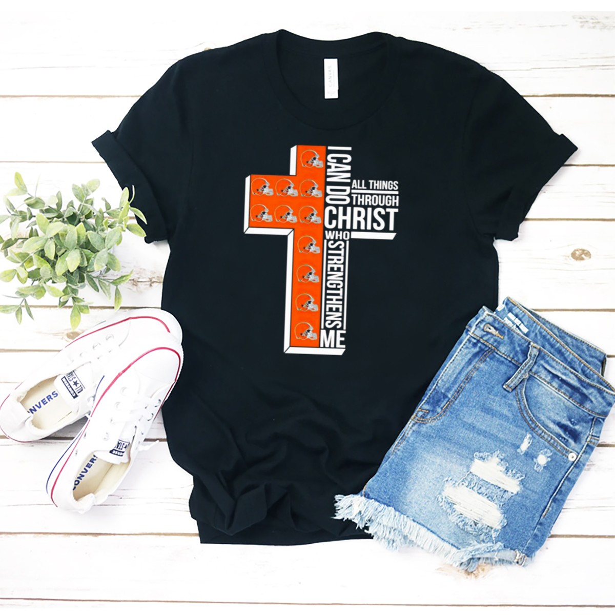 Show your unwavering support for the Cleveland Browns with our “I Can Do All Things Through Christ Who Strengthens Me” T-shirt. This fan-made design captures the spirit of determination and faith, making it perfect for die-hard Browns fans who want to showcase their team pride in style. Ideal for casual wear, themed events, or daily outings, this classic-fit shirt is a must-have for anyone looking to combine faith and fandom in a comfortable and fashionable way.