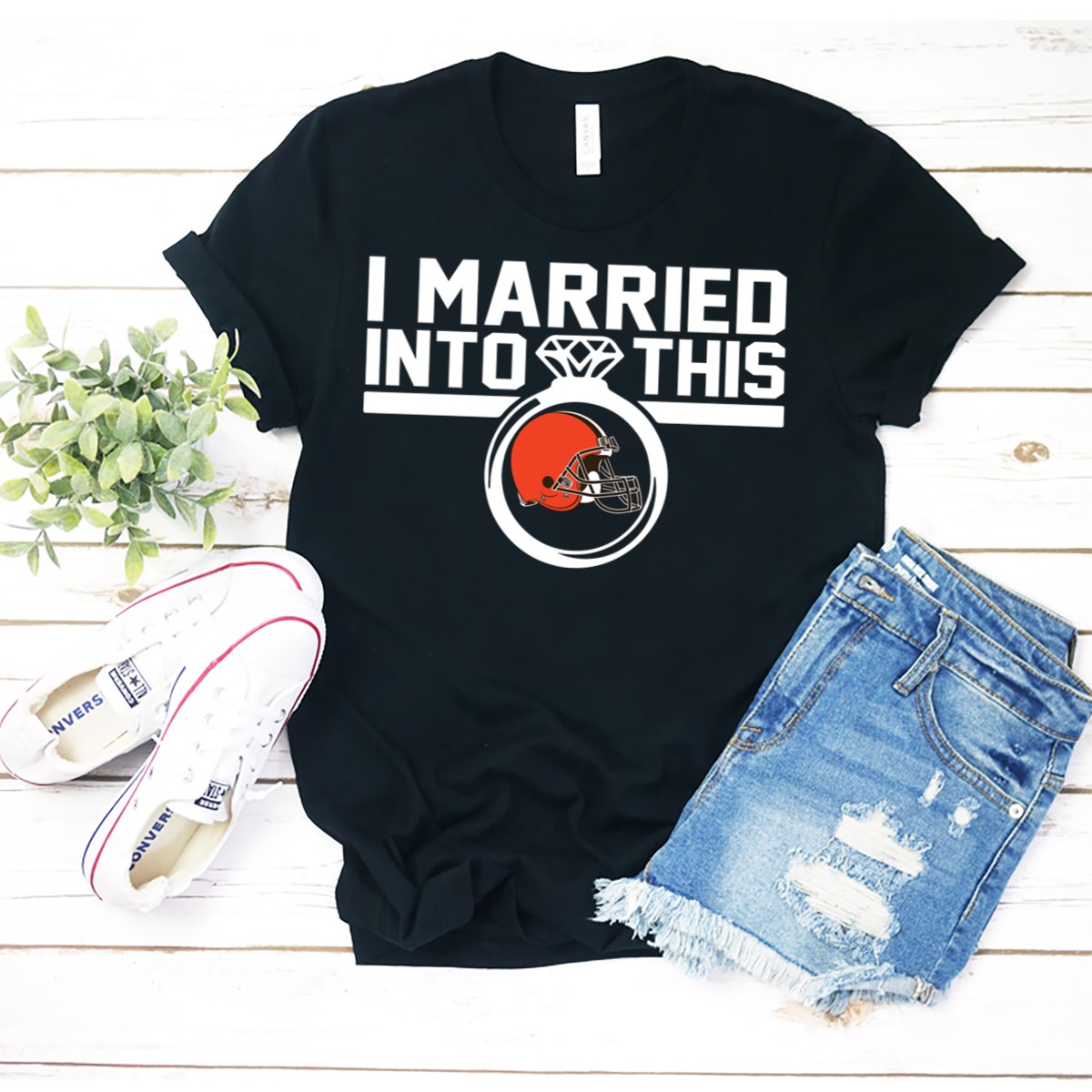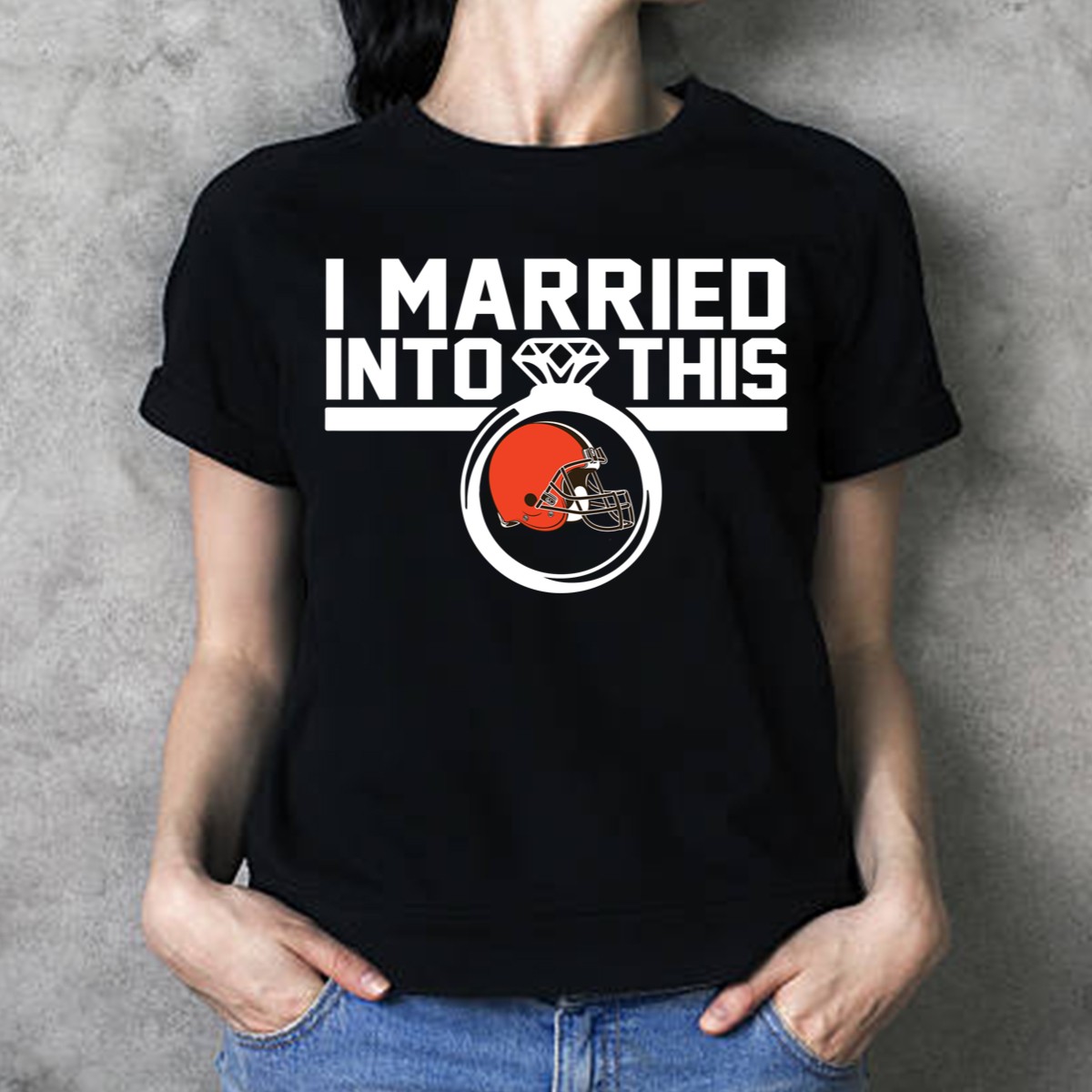 Show off your Cleveland Browns pride with our “I Married Into This” T-shirt! Perfect for fans who embrace their love for the team and the traditions that come with it, this shirt is an ideal choice for casual outings, themed events, or simply cheering from the couch. Made for comfort and style, it features a fun, fan-made design that celebrates your commitment to the team and your loved ones. Printed in the USA, this T-shirt combines a classic fit with a playful twist, making it a unique addition to any fan’s wardrobe.