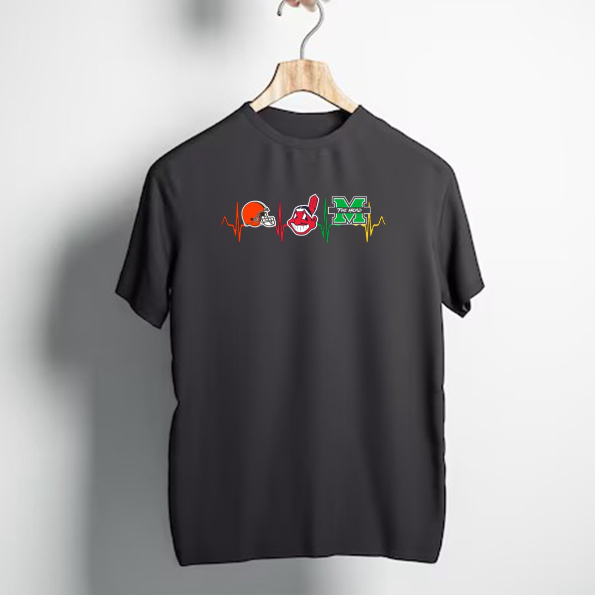 Show your unwavering support for your favorite teams with the Cleveland Browns Indians Marshall Thundering Herd Heartbeat T-Shirt! This fan-made design, printed in the USA, perfectly captures the spirit of camaraderie and passion for sports. Ideal for casual outings, themed events, or daily wear, this shirt is a must-have for any dedicated fan looking to showcase their allegiance in style.
