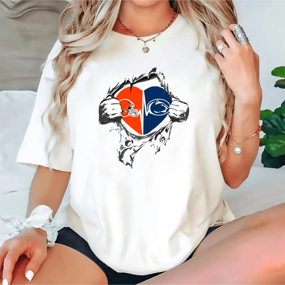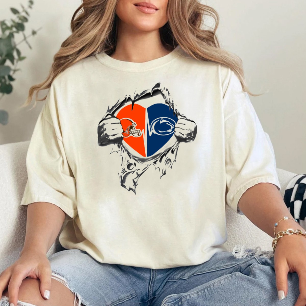 Show your love for the Cleveland Browns and Penn State with this unique fan-made graphic T-shirt that perfectly blends team spirit with style. Ideal for casual outings, themed events, or just lounging around, this shirt is designed for true fans who appreciate comfort without sacrificing their passion. With its eye-catching heart logo, it’s a must-have addition to your game day wardrobe or everyday wear.