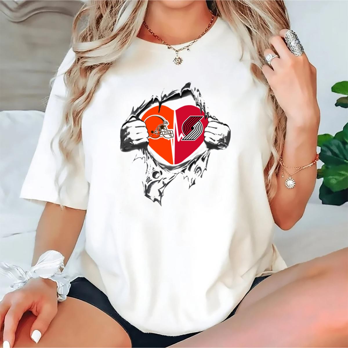 Show your love for both the Cleveland Browns and the Portland Trail Blazers with this unique fan-made heart design T-shirt! Perfect for die-hard fans and casual wearers alike, this shirt is ideal for game days, themed events, or simply showcasing your passion in everyday life. Made from soft and breathable fabric, it ensures comfort while you cheer on your favorite teams!