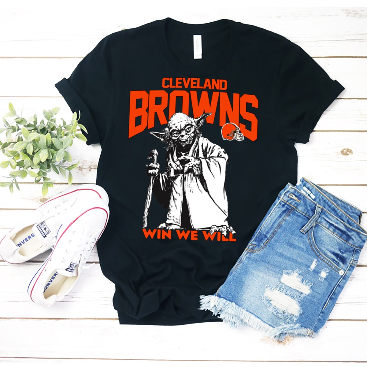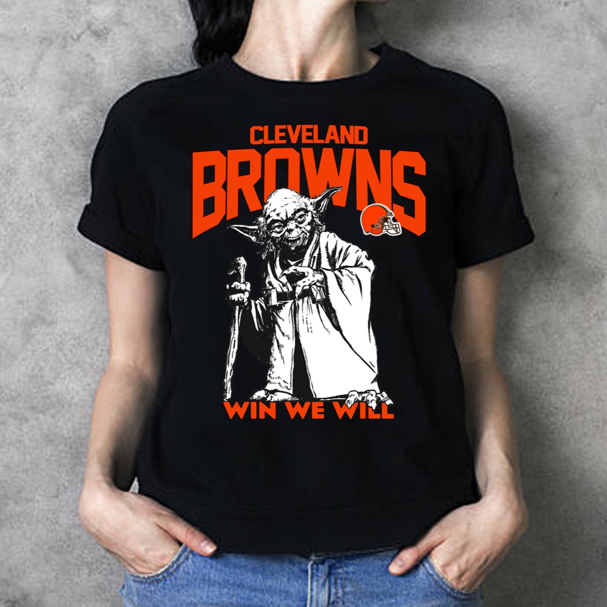 Show your love for the Cleveland Browns and the legendary Star Wars universe with our fan-made “Win We Will” Yoda T-shirt. This unique design is perfect for die-hard fans looking to express their team spirit while embracing the wisdom of the Jedi Master. Ideal for casual outings, themed events, or just lounging at home, this T-shirt is sure to turn heads and spark conversations among fellow fans.