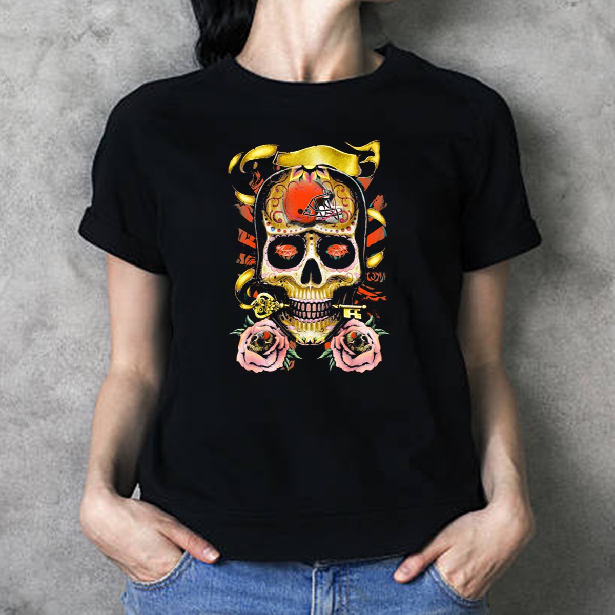 Cleveland Browns Sugar Skull Helmet Roses T-Shirt