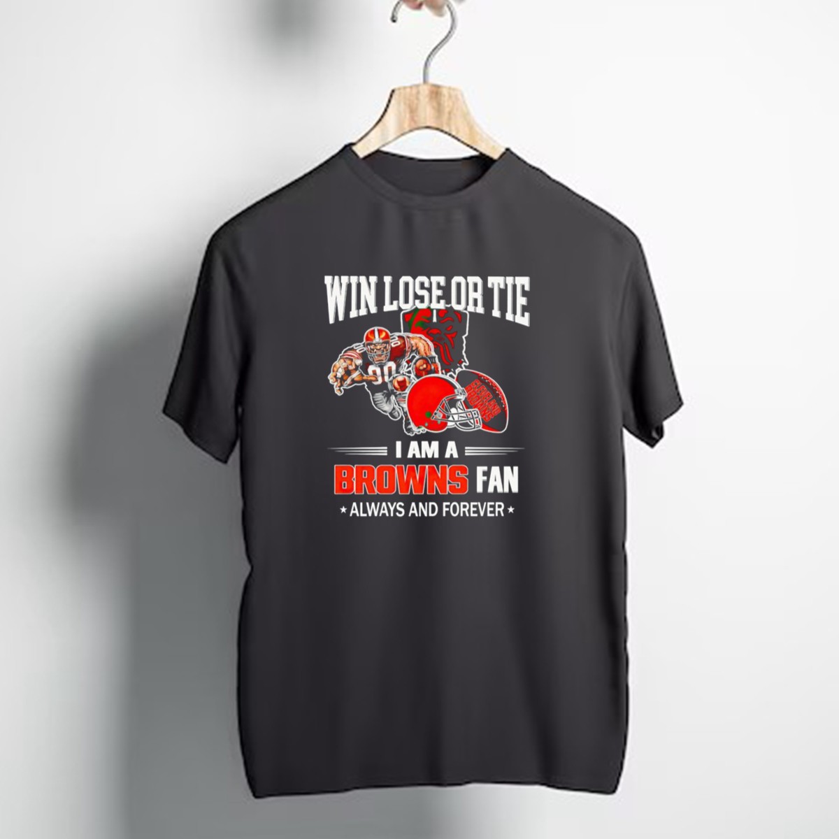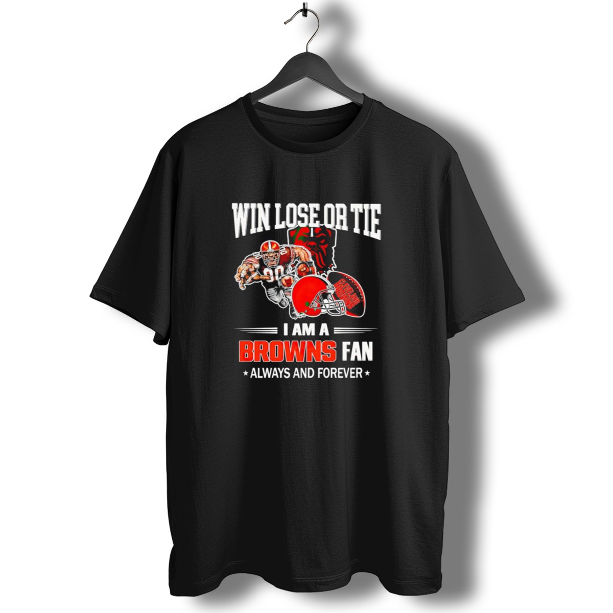 Show your unwavering support for the Cleveland Browns with this fan-made “Win Lose or Tie I Am a Browns Fan Always and Forever” T-shirt. Perfect for die-hard fans, this shirt is ideal for casual outings, themed events, or simply cheering on your team from the comfort of your home. With a classic fit and soft, breathable material, it’s designed for comfort and durability, making it a must-have for any Browns enthusiast.