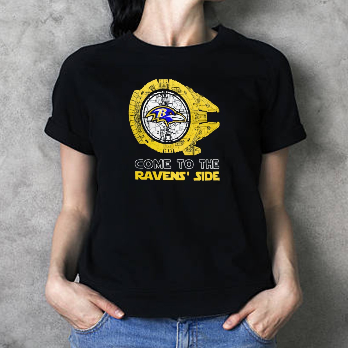 Join the dark side of fandom with our exclusive “Come to the Ravens Side” T-shirt, where the thrill of the Baltimore Ravens meets the iconic universe of Star Wars! Perfect for die-hard Ravens fans and Star Wars enthusiasts alike, this graphic tee is ideal for casual outings, game days, or themed events. Crafted with a fan-made design printed in the USA, it celebrates your love for both the team and the galaxy far, far away.