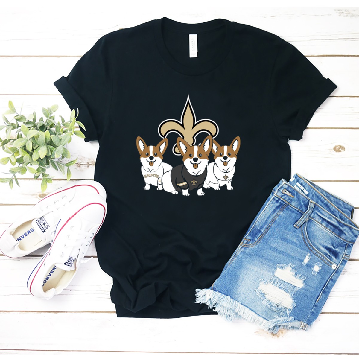 Show off your love for both corgis and the New Orleans Saints with this delightful fan-made graphic T-shirt! Perfect for animal lovers and sports fans alike, this shirt is a great choice for casual outings, themed events, or just lounging around. Made with high-quality materials and featuring a fun design, it’s sure to make you stand out while supporting your favorite team in comfort and style.