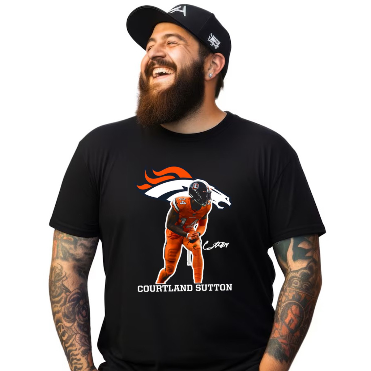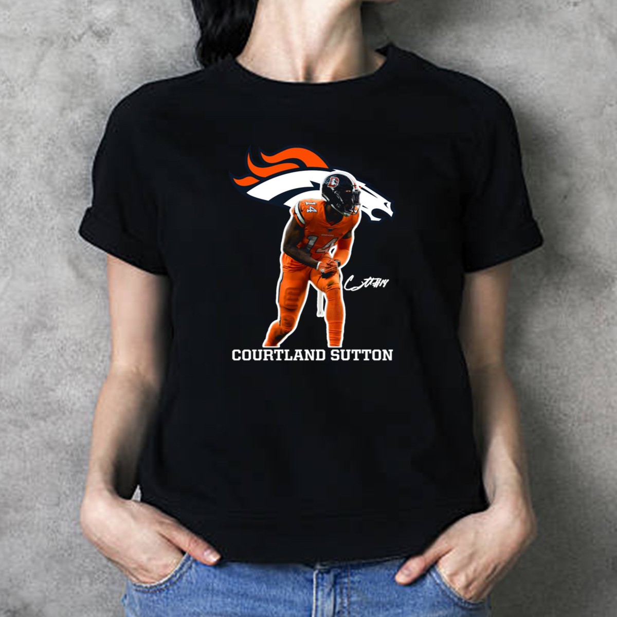 Show your team spirit with the Courtland Sutton Denver Broncos Football Player 14 T-Shirt, perfect for passionate fans who want to celebrate their favorite wide receiver. This fan-made design is ideal for casual outings, themed events, or just lounging at home while cheering on the Broncos. Made for comfort and style, this shirt stands out with a high-quality print that showcases your dedication to the team, all while being crafted right here in the USA.